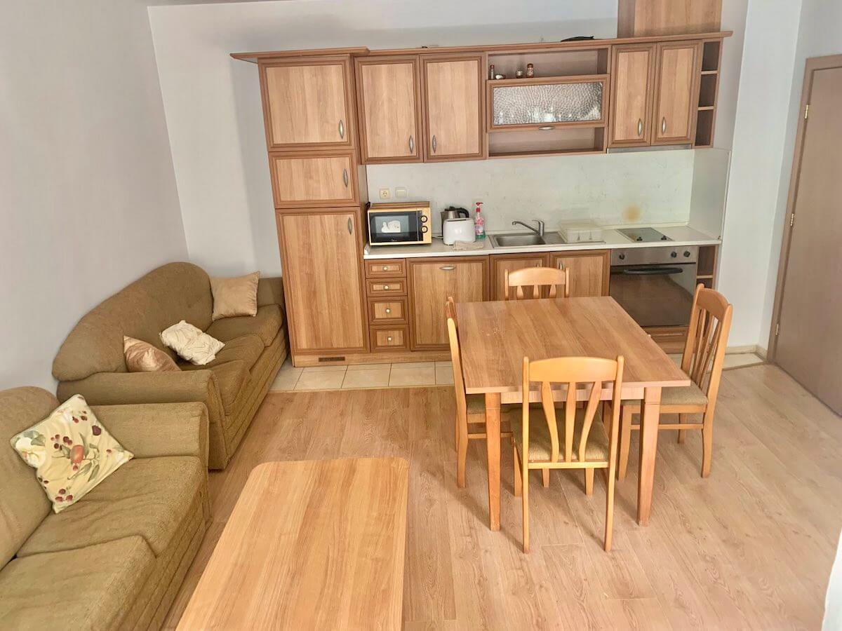 В Несебре, небольшом жилом доме Вилла Леванте, предлагается к продаже квартиры с одной спальней. Достаточно просторный апартамент, хорошо обустроенный для комфортного проживания и в курортный сезон, и в течение всего года, находится на втором этаже. Его общая площадь – 53,0 кв. м. Все пространство меблировано, произведен косметический ремонт. Оснащение, включая бытовую и цифровую технику, остается будущим собственникам. Возведенный в пяти минутах ходьбы от берега, жилой дом Вилла Леванте, окружен густой зеленью. До центральной части города Несебр можно дойти пешком, а до центральной части черноморского побережья Болгарии, Солнечного берега, всего несколько километров. На территории есть цветущий сад, адаптированный для отдыха и неспешных прогулок, и парковка для автомобилей