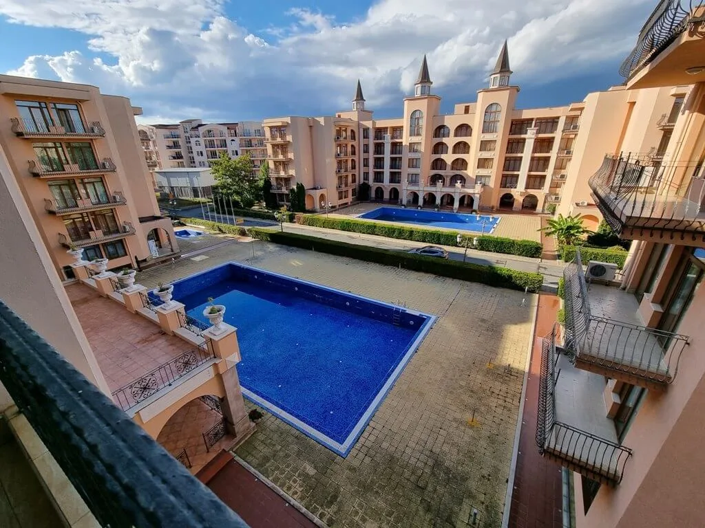 Внимание, новое предложение от компании Lev & Mar Group! В шикарном апарт-отеле Палаццо, и одном из самых комфортабельных в Солнечном береге, к продаже предлагается просторная двухкомнатная квартира площадью 70 кв. м. В квартире недавно был произведен косметический ремонт. Расположенная на третьем этаже, с террасы открывается вид на бассейн. Палаццо является крайне популярным объектом как для инвесторов, так и для ценителей качественного сервиса и отличного местоположения. Он построен в пяти минутах ходьбы от пляжа, и предлагает собственникам богатый и разнообразный спектр услуг. На территории работает круглосуточный бар, мини-бар у бассейна, есть ресторан с интернациональным меню. В паре шагов находится клуб Какао.