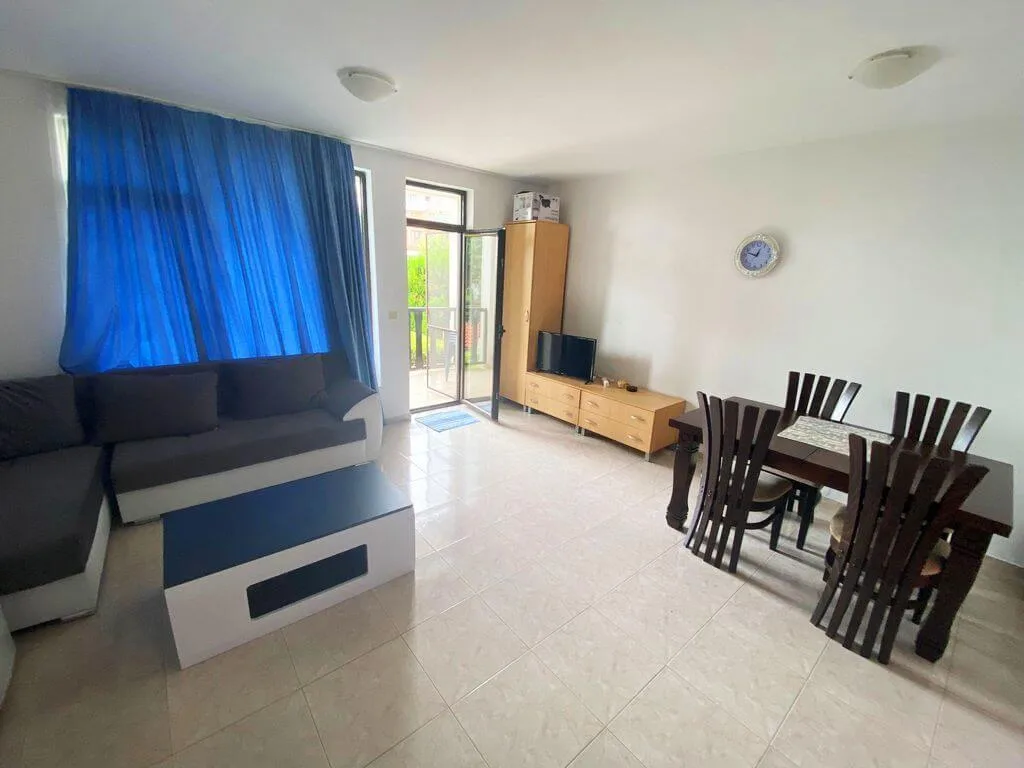АН Lev & Mar Group предлагает Вашему вниманию новое предложение в Святом Власе! В комплексе курортных апартаментов Камбани, расположенном в 200 метрах от моря, к продаже предлагается двухкомнатная квартира общей площадью 62 кв. м. Апартамент с недавно проведенным косметическим ремонтом и индивидуальным дизайном расположен на первом этаже. С террасы квартиры имеется свой личный выход на территорию комплекса. Отличная и удобная планировка: угловая часть гостиной отведена под кухню. Оригинальный, с впечатляющей архитектурой, курортный комплекс Камбани находится всего в 200 метрах от пляжа Святого Власа. Просторная, обустроенная по оригинальному дизайн-проекту территория включает массу удобств и развлечений для гостей. Красивые сады, большой бассейн, ресторан с обслуживанием по меню, служба рент-а-кар, кафе, паркинг, беседки для отдыха, игровые зоны для маленьких жителей – все это без ограничений открыто к использованию. В полукилометре находится яхтенный порт – идеальное место для прогулок, рядом супермаркет, остановка автобуса, амфитеатр и СПА-комплекс.