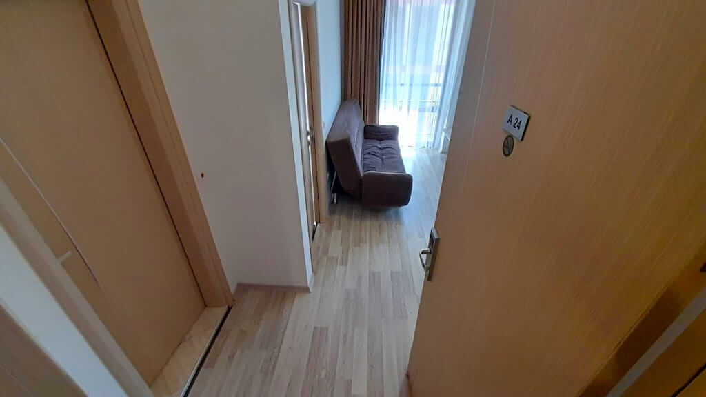 АН Lev & Mar Group предлагает вашему вниманию компактную двухкомнатную квартиру в одном из самых востребованных комплексов Солнечного берега. ЖК «Тарсис» построен в 600 м от моря. К услугам собственников и гостей на территории расположились: два бассейна, пиано-бар, ресторан, диско-клуб, супермаркет, салон красоты, рецепция, парковка, детская площадка с горками и качелями, мини аквапарк, подземный паркинг и многое другое.Апартамент расположен на втором этаже. Общая площадь 55 кв.м. Полностью обставлен мебелью и бытовой техникой. Прекрасно подойдет для сезонной сдачи в аренду или летнего отпуска. С террасы открывается вид на бассейн и территорию комплекса.