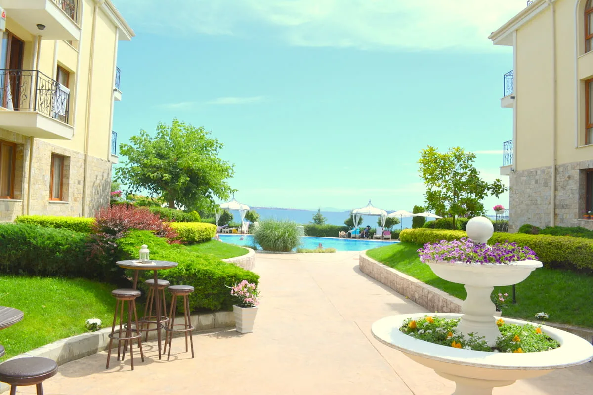Отличная квартира в престижном районе Святого Власа! К продаже готова двухкомнатная квартира в ЖК Роял Бэй 1. Фактический первый этаж, площадь – 62 м. кв. Бонус – красивый балкон, из которого открывается морская панорама. Санузел с ванной, просторный холл-прихожая. Достойное состояние и мебели, и техники. Комплекс Роял Бэй 1 расположен вблизи пляжа – в 50 метрах от песчаной линии со множеством развлечений и спортивных локаций. Яхтенная пристань в пятнадцати минутах ходьбы, инфраструктура города – квартала Юрта и центра – как на ладони. Непосредственно в комплексе: бассейн, автостоянка, красивый зеленый ландшафт, бар, спортивная зона и пр