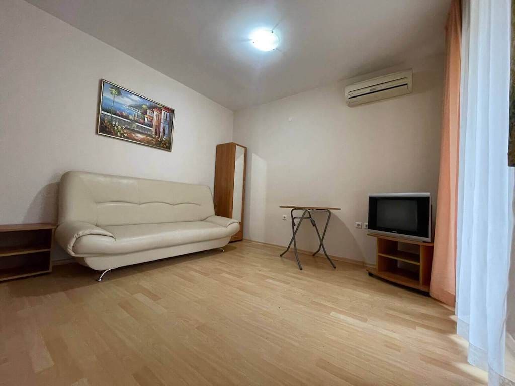 Новое! Эксклюзивное предложение от нашего агентства на Солнечном берегу! В курортном жилом комплексе Амадеус 11 готов к осмотрам апартамент тип студия общей площадью 35 кв. м. Достаточно просторная и полностью обустроенная всем необходимым для комфортного проживания квартира располагается на третьем этаже. Отличная планировка предполагает небольшой коридор, отдельно стоящую кухню, санузел, террасу с видом на бассейн и зону отдыха. Квартира на южной стороне. Продажа обьекта «под ключ». Построенный в озелененном и очень спокойном квартале Солнечного берега, Амадеус 11 находится в семи минутах от прибрежной линии – в 450 метрах. Совсем рядом с комплексом круглогодично работает супермаркет Младость, в пешей доступности отличная парковая зона с игровыми площадками, а на территории отеля – большой плавательный бассейн и паркинг. Коммунальное обслуживание осуществляется по низкому тарифу – 6 евро за 1 кв. м, комплекс отлично подходит для круглогодичного проживания, есть Акт 16