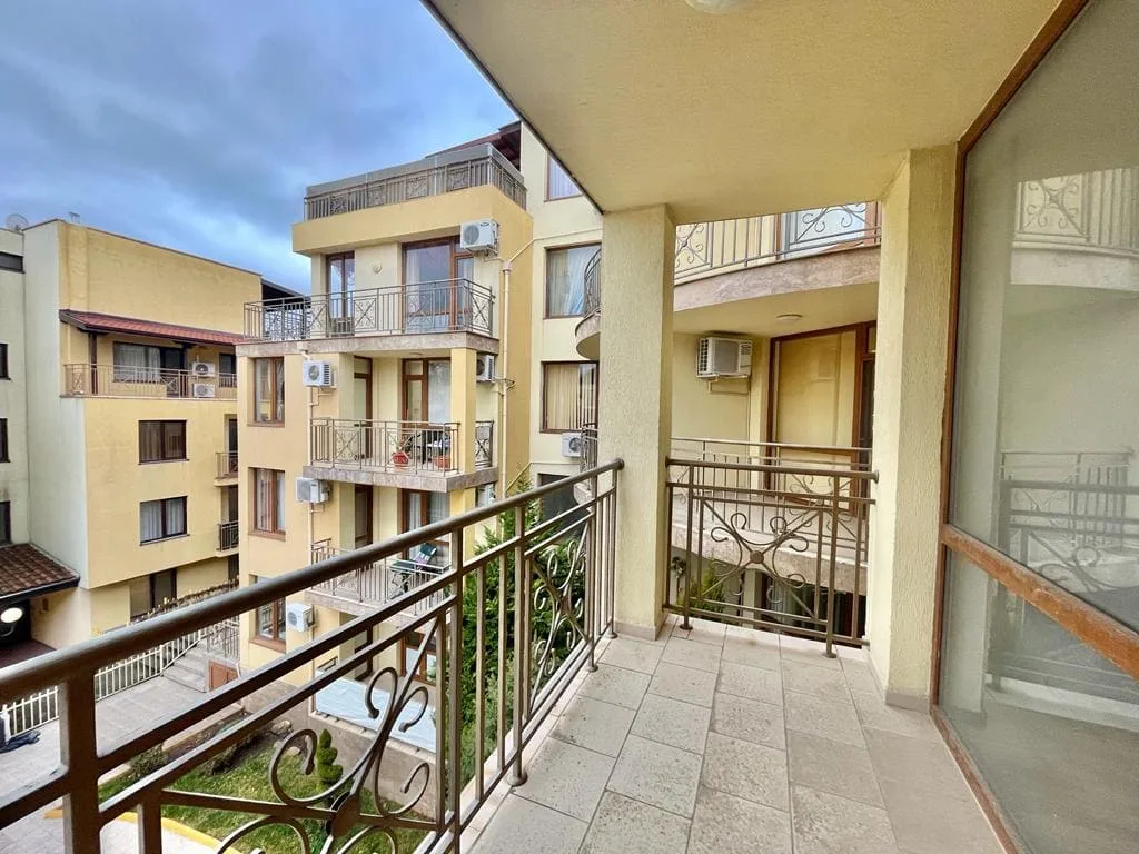 В одном из самых востребованных у покупателей курортной недвижимости жилых комплексов курортного города Святой Влас, Сиана, к продаже предлагается новый двухкомнатный апартамент. Квартира идеально подойдет как для круглогодичного проживания, так и для проведения летнего отдыха. Новые собственники имеют возможность обустроить этот апартамент по своему усмотрению. Общая площадь жилья составляет – 60 кв. м., третий этаж . В здании комплекса установлен лифт. ЖК Сиана – это отлично продуманный проект с хорошей планировкой апартаментов и исключительным качеством обслуживания. Такса в 400 евро покрывает уход за общими частями и предоставление ряда важных услуг непосредственно на территории: здесь работают ресторан, салон красоты, построен детский городок, фитнес-клуб, бассейн и парковка. В трехстах метрах пляж, ЖК станет отличным выбором для ПМЖ