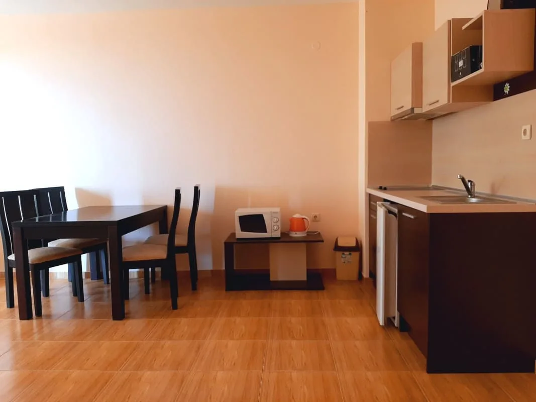 В комплексе с максимальным возможным уровнем комфорта Мэджик Дримс, предлагается к продаже двухкомнатная квартира общей площадью 71,88 кв. м. ( жилая – 58,80 кв. м.). Все обустройство входит в стоимость – апартамент оснащен: холодильником, бойлером, телевизором, кондиционером и всей мебелью. Просторная терраса с видом на бассейн и территорию комплекса используется как зона отдыха. Хорошее техническое состояние, под ключ. Мэджик Дримс – комплекс с закрытым доступом к территории, расположенный в 250 метрах от пляжа. Инфраструктура – это практически безграничные возможности для развлечений и отдыха: есть спортивные площадки, два бара, СПА-комплекс, детский клуб с аниматорами, магазины. В ресторане подают блюда разных мировых кухонь, а прогулка по зеленым аллеям позволит расслабиться в знойный день. В ЖК доступная такса – 9 евро/ кв.м в год.