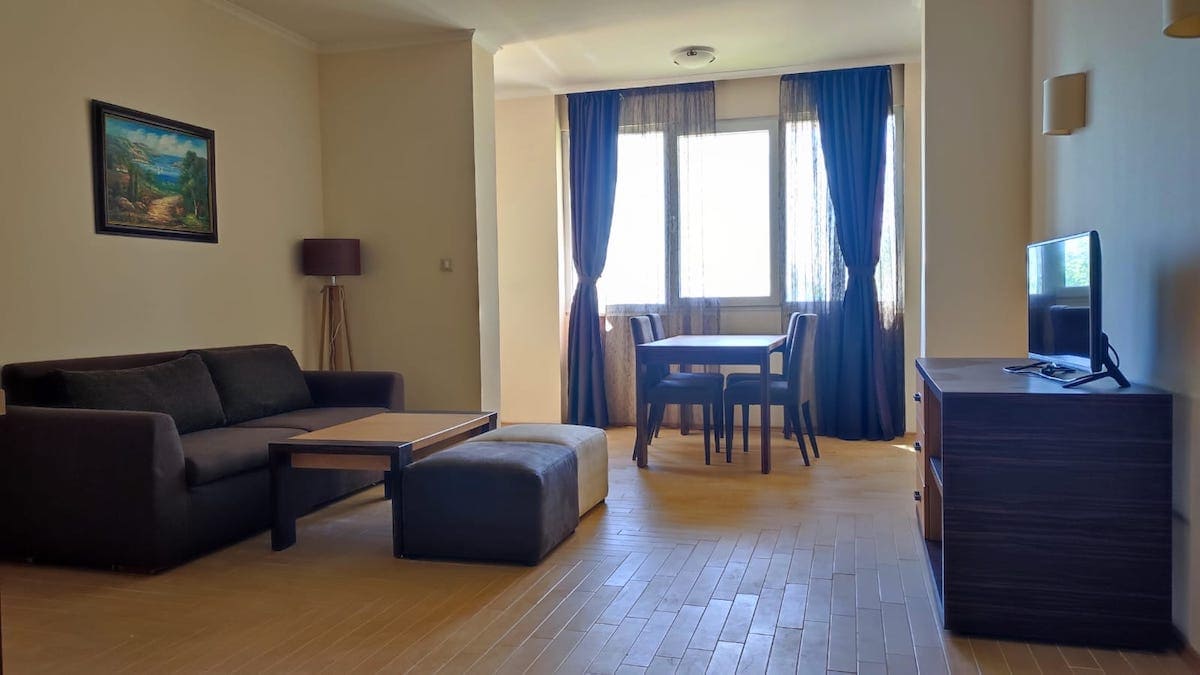 Агентство недвижимости Lev & Mar Group предлагает к продаже прекрасное новое предложение с морской панорамой, открывающейся из окон и террасы! В апарт - отеле Маджестик Бич Резорт продается двухкомнатная квартира общей площадью 75 кв. м. Светлая, с прекрасно организованным пространством, она отлично подходит для проведения летнего отдыха. С балкона и из окон квартиры – живописный вид на море (панорама открыта и не будет застроена). Третий этаж, продажа осуществляется в актуальном состоянии. Данный отель по праву считается эталоном архитектуры, эстетики внутреннего пространства и высокого сервиса – курортный отель Маджестик Бич Резорт отвечает всем этим параметрам. Отель построен в пятидесяти метрах от моря, занимая внушительную часть побережья Солнечного берега. На территории работает четыре ресторана с европейской, болгарской и средиземноморской кухней, есть несколько баров, в том числе и пляжный. Для посещения открыты бильярдная, СПА-комплекс с оздоровительными процедурами. Для малышей организовываются игры и проводятся занятия.