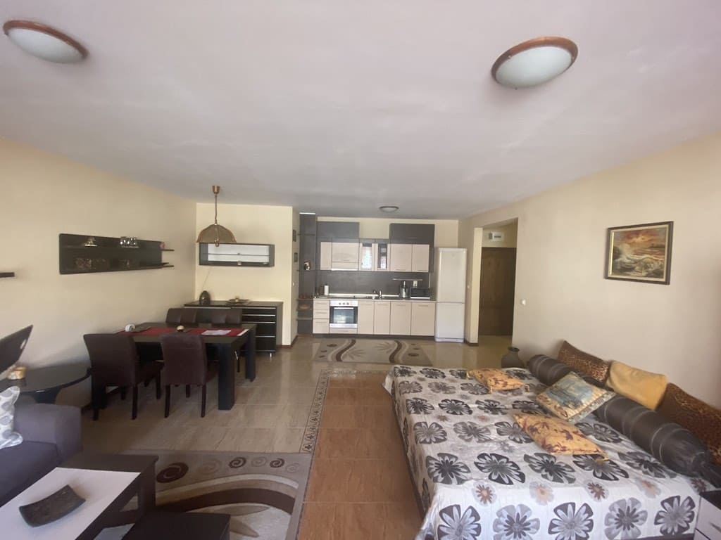 Великолепное предложение уже открыто к продаже клиентам АН Lev & Mar Group! В Святом Власе, жилом комплексе Трявна Бич, предлагается к продаже просторный двухкомнатный апартамент с мебелью и бытовой техникой! Общая площадь недвижимости – 78 кв. м., четвертый этаж ,продажа осуществляется в актуальном состоянии. Отель построен на улице Люляк, курорта Святого Власа – от пляжа и моря комплекс отделяет всего пять минут ходьбы. Рядом с отелем Трявна Бич расположена торговая улочка на которой можно приобрести свежие фрукты, морепродукты, магазины и заведения питания. К услугам отдыхающих в отеле красивый ресторан с морской панорамой на крыше, бар, плавательный бассейн и беспроводной интернет. Малыши смогут развлечься на детской площадке. Рядом с комплексом остановка и продуктовый магазин (в трех минутах.