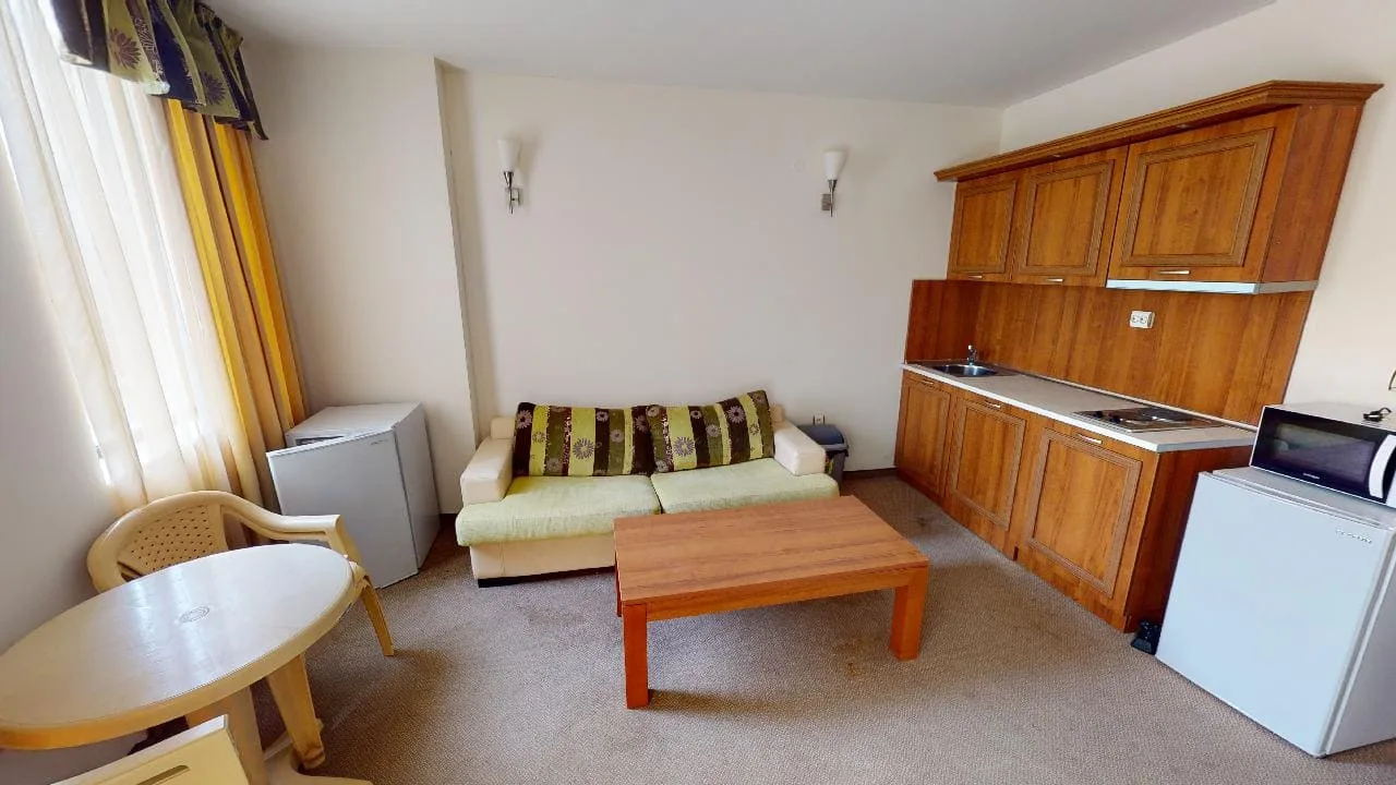 Предлагаем Вам уникальную возможность приобрести двухкомнатную квартиру в жилом комплексе "Авалон" на Солнечном берегу Болгарии. Квартира расположена на втором этаже, имеет общую площадь 66 кв.м и полностью меблирована и укомплектована бытовой техникой. Расстояние от комплекса до моря всего 350 метров, что делает его идеальным местом для отдыха и жизни на берегу моря. Такса поддержки составляет всего 8 евро за квадратный метр в год. Квартира имеет прекрасный вид с террасы на прилегающую территорию. Кроме того, в комплексе имеется бассейн, детская площадка и ресторан с блюдами разнообразной кухни. Расстояние до центра курорта Солнечный берег составляет всего 15-20 минут пешей прогулки, а до города Несебр можно добраться на городском транспорте за 15 минут. Круглогодично работающий супермаркет Младость находится всего в 15 минутах ходьбы. Не упустите свой шанс приобрести квартиру в жилом комплексе "Авалон" на Солнечном берегу. Здесь вы сможете наслаждаться прекрасным видом, комфортным проживанием и отличными условиями для отдыха и жизни. Сделайте свою мечту о жизни на берегу моря реальностью!