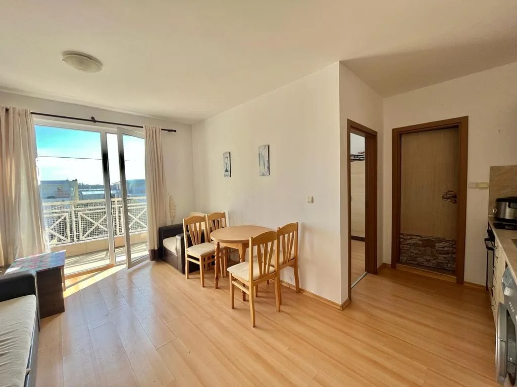Предлагается приобрести уютную двухкомнатную квартиру в ЖК Санни Дэй 3 - Премиум, расположенном в прекрасном месте. Этот комплекс сочетает в себе комфорт и функциональность. Квартира имеет общую площадь в 48 квадратных метров и находится на третьем этаже, откуда открывается вид на бассейн и территорию комплекса. Квартира продается с мебелью, что позволит новым владельцам сразу же наслаждаться уютной обстановкой и комфортом. Техническое обслуживание фиксированной ценой в 580 евро в год позволит снизить расходы на содержание квартиры. Солнечные дни можно проводить на просторной террасе, откуда открывается великолепный вид на бассейн. Расстояние до моря составляет всего 1000 метров, что делает эту квартиру идеальным местом для отдыха и проживания. На территории ЖК Санни Дэй 3 предоставлены все необходимые услуги для комфортного отдыха: открытый бассейн, снек-бар, магазины, пиццерия, фитнес-зал, озеленение и освещение территории. Для детей предусмотрена игровая площадка, а для автомобилей – удобная парковка. Не упустите возможность приобрести эту уникальную квартиру с прекрасным расположением и удобствами. Сделайте свою жизнь более комфортной и насыщенной в ЖК Санни Дэй 3!