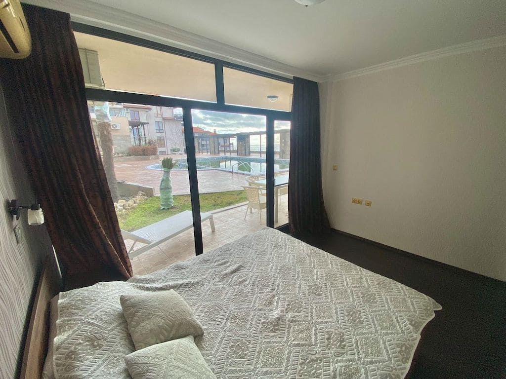 Представляем вашему вниманию уникальное предложение на рынке недвижимости – двухкомнатная квартира площадью 80 квадратных метров на первой линии от моря в курортном городе Святой Влас. Расположенная на партерном этаже в жилом комплексе Dolce Vita 2, эта квартира прекрасно подойдет как для летнего отдыха, так и для комфортного проживания в любое время года. В квартире есть все необходимое для комфортного проживания: просторная гостиная с кухонной зоной, спальня с собственным санитарным узлом, кладовое помещение-гардероб, еще один санитарный узел и две террасы с прекрасным видом на залив Солнечного берега и город Несебр. Квартира продается полностью меблированной и оборудованной бытовой техникой, что позволит вам максимально быстро и комфортно освоить новое жилье. Для вашего удобства в каждой комнате установлены кондиционеры, которые обеспечат вам прохладу в жаркие летние дни и тепло в холодную зимнюю пору. Годовая такса обслуживания составляет 600 евро, что делает эту квартиру еще более привлекательной для покупки. Если вы ищете недвижимость на берегу моря, то эта квартира станет для вас отличным вариантом. Не упустите свой шанс приобрести уникальное жилье в курортном городе Святой Влас.