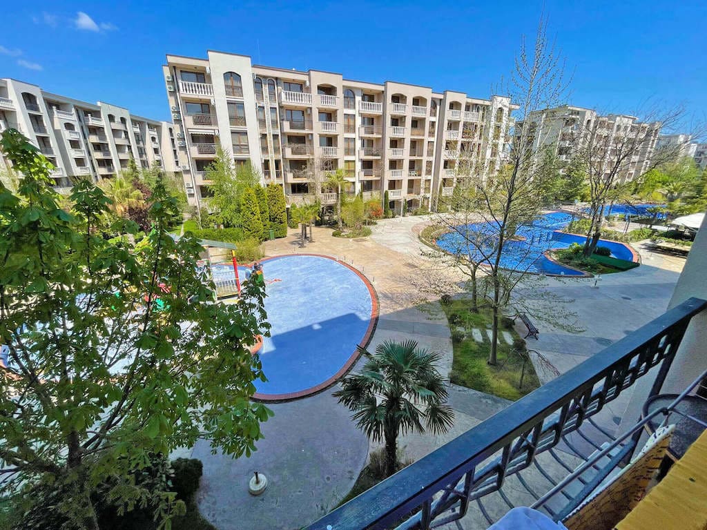 АН Lev & Mar Group рада предложить своим клиентам уникальную возможность приобрести современную и уютную двухкомнатную квартиру в ЖК Cascadas 8 на Солнечном берегу. Эта квартира имеет общую площадь 54 квадратных метра и находится на третьем этаже здания. В квартире есть все необходимое для комфортного проживания, включая душевую кабину в санузле, террасу с видом на бассейн и территорию комплекса, а также кондиционер. Расстояние до моря составляет всего 600 метров, а такса поддержки составляет 15 евро за квадратный метр в год. Комплекс Cascadas имеет масштабную территорию с несколькими сезонными бассейнами, детскими зонами, рестораном, магазинами, барами, подземным паркингом и открытой автостоянкой, фитнес-центром, СПА-центром, круглогодичной охраной и многим другим. Непосредственно рядом с комплексом находится вся необходимая городская инфраструктура. Эта квартира с мебелью имеет хороший инвестиционный потенциал и может стать прекрасным выбором как для постоянного проживания, так и для сдачи в аренду. Если вы ищете современное жилье на Солнечном берегу с удобствами и отличной инфраструктурой, то этот вариант идеально подойдет для вас. Не упустите свой шанс стать владельцем этой прекрасной квартиры в ЖК Cascadas 8.