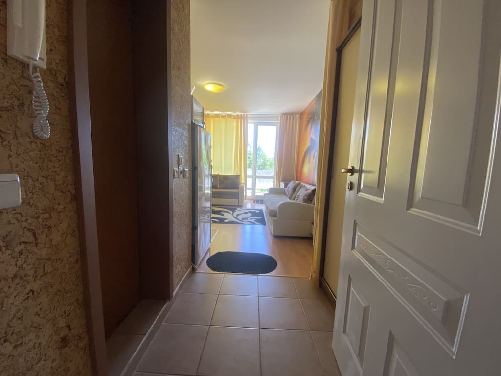 АН Lev & Mar Group рады предложить вам реальный вариант приобрести просторную, современную и полностью меблированную студию в 900 метрах от моря, на территории престижного Солнечный берег, в масштабном ЖК Холидей Форт Гольф Клуб. Общий метраж этой уютной студии 36 кв.м, и она расположена на втором этаже одного из зданий комплекса. С террасы открывается прекрасный вид на бассейн и шикарно обустроенную территорию жилого комплекса. Это отличный вариант для тех, кто ищет прекрасное жилье для проведения летнего отдыха, ПМЖ или инвестиций. Внимание к деталям и качество исполнения делают эту студию непревзойденным предложением. А дополнительное преимущество состоит в том, что годовой налог на поддержку составляет 13,5 €/кв.м в год. Жилье находится в шаговой доступности от всей необходимой городской инфраструктуры и большого аквапарка. На богато озелененной территории ЖК есть несколько сезонных бассейнов с водными горками, оборудованные детские площадки, организованы зоны для отдыха и загара. Также в вашем распоряжении бар, открытый паркинг и круглосуточная охрана, обеспечивающие ваше комфортное и безопасное пребывание. Кроме того, управляющая компания предлагает широкий спектр услуг, включая аренду апартаментов, тренажерный зал и многое другое. Вы сможете получить дополнительный доход, сдавая свою студию в аренду, или же наслаждаться всеми удобствами комплекса самостоятельно. Не упустите возможность приобрести эту прекрасную студию, которая сочетает в себе стиль, комфорт и потрясающие возможности для отдыха и инвестиций. Позвоните нам прямо сейчас, чтобы получить более подробную информацию и организовать осмотр этой недвижимости. Наши менеджеры всегда готовы помочь вам купить недвижимость рядом с морем!