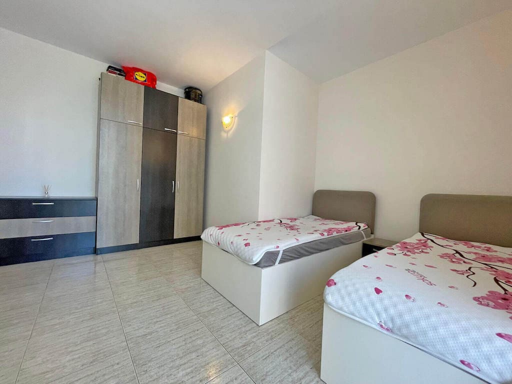 Компания Lev & Mar Group с гордостью представляет Вашему вниманию новое предложение – современную, меблированную квартиру с одной спальней на Солнечном берегу, всего в 500 метрах от пляжа. Этот прекрасный объект находится в жилом комплексе Saint Sofia и имеет площадь 65 квадратных метров. Квартира расположена на первом этаже и имеет собственный вход, что придает ей дополнительную приватность и удобство. Это идеальное предложение для тех, кто ищет место для летнего отдыха или инвестиций. Комплекс обслуживается таксой поддержки, стоимость которой составляет всего 8 евро за квадратный метр в год. Кроме того, центральная часть курорта находится всего в 20 минутах пешей прогулки, а до города Несебр можно доехать всего за несколько остановок на общественном транспорте. Жилой комплекс Saint Sofia предлагает своим жителям озелененную территорию с сезонным бассейном, детской площадкой, зонами для отдыха и загара. Круглосуточная охрана обеспечивает безопасность и спокойствие. Также рядом расположен супермаркет, что делает покупки еще более удобными. Не упустите возможность стать счастливым владельцем этой уникальной квартиры на Солнечном берегу. Свяжитесь с нами сегодня, чтобы получить дополнительную информацию или организовать просмотр. Lev & Mar Group всегда готова помочь вам с вашими потребностями в недвижимости и сделать ваше инвестиционное решение максимально комфортным и выгодным.