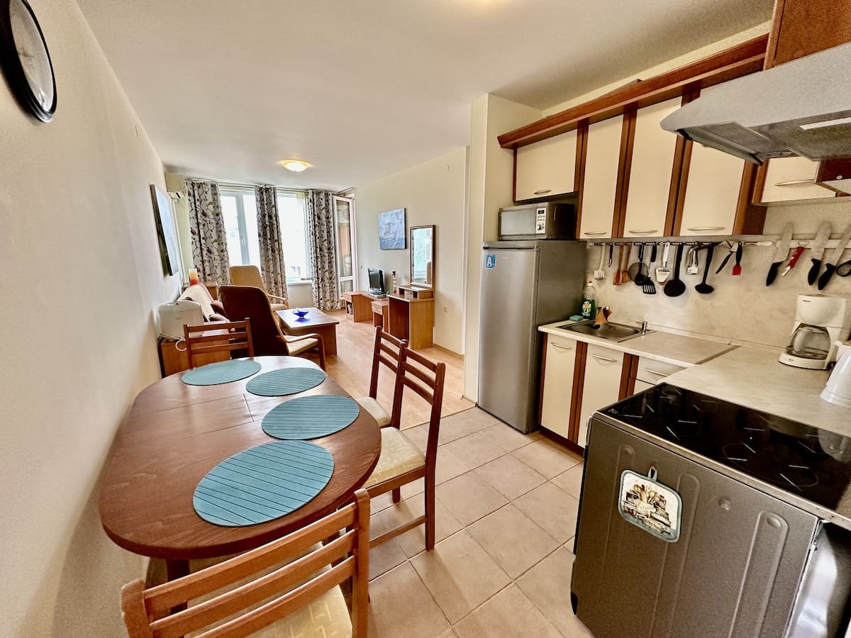 Добро пожаловать в Nessebar Fort Golf Club - просторный апартамент с двумя спальнями и двумя санузлами, идеальное место для вашего комфортного проживания, летнего отдыха и инвестиций на Солнечном берегу. Этот привлекательный апартамент, расположенный на четвертом этаже, предлагает площадь 80 квадратных метров, оборудован мебелью и техникой, чтобы вы могли немедленно насладиться своим новым жилищем. Особая особенность этой недвижимости - наличие душевой кабины в одном из санузлов, обеспечивая удобство и комфорт вашей семье или гостям. С террасы апартамента открывается прекрасный вид на обустроенную территорию жилого комплекса. Вы сможете наслаждаться великолепными панорамами, расслабляться и проводить время на свежем воздухе, принимая солнечные ванны или организовывая уютные вечерние посиделки с друзьями и семьей. Nessebar Fort Golf Club предлагает полный спектр удобств для вашего комфорта и развлечения. Вас ожидают круглосуточная охрана и закрытая территория с контролем доступа, гарантирующие вашу безопасность и спокойствие. Насладитесь освежающими плаваниями в нескольких бассейнах или расслабьтесь в специально созданных зонах отдыха. Вас окружит изысканная зелень на территории жилого комплекса, создавая уютную атмосферу и способствуя вашему релаксу. Апартаменты находятся всего в 900 метрах от пляжа, где вы сможете насладиться песчаными пляжами и лазурными волнами Черного моря. Рядом с комплексом расположена вся городская инфраструктура, что обеспечивает легкий доступ ко всему необходимому для вашей повседневной жизни. Не упустите возможность стать счастливым обладателем этого прекрасного апартамента в Nessebar Fort Golf Club. Он представляет собой идеальное сочетание комфорта, качества жизни и потенциала для инвестиций. Свяжитесь с нами прямо сейчас, чтобы узнать больше о данном предложении и забронировать просмотр этого уникального жилища.