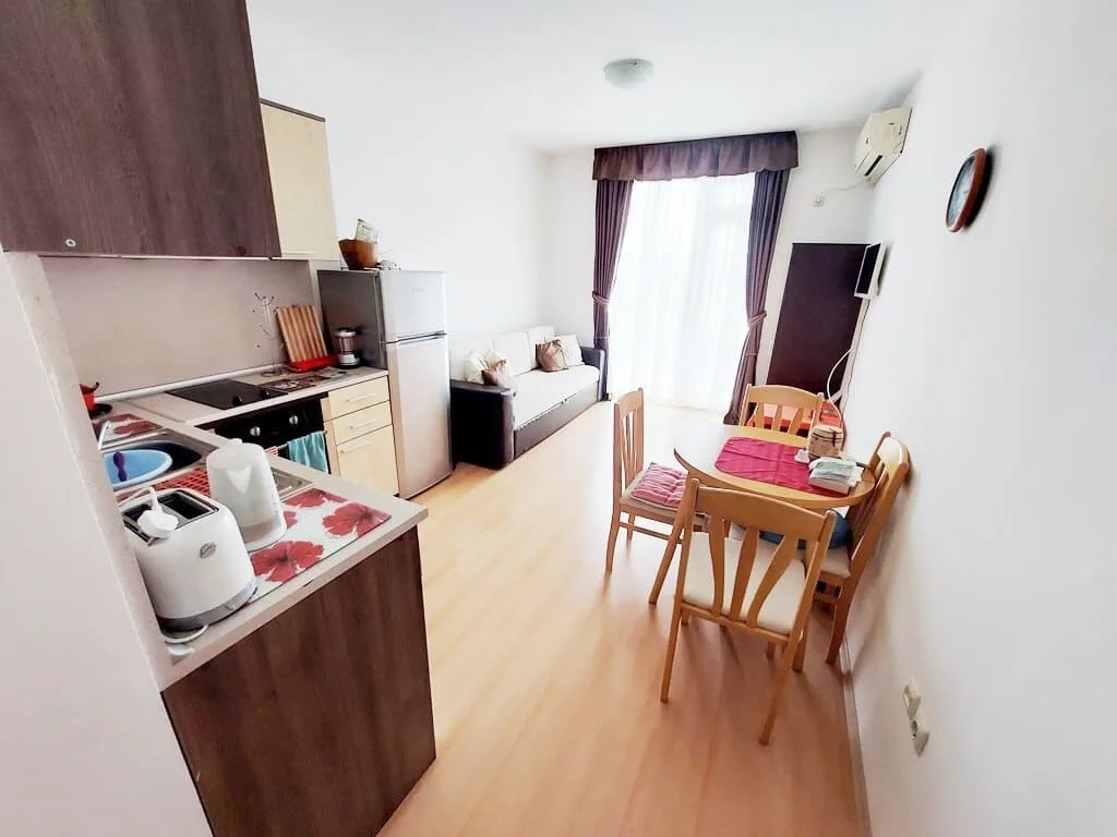 Добро пожаловать в мир комфорта и удовольствия – представляем вашему вниманию бюджетное предложение от нашего агентства недвижимости Lev & Mar Group! ЖК Санни Дэй 5 – это ваш шанс стать обладателем светлой и полностью меблированной студии общей площадью 30 квадратных метров. Идеальное место для тех, кто мечтает о собственном жилье на Солнечном берегу всего в 5000 метрах от бесконечных пляжей и прекрасного моря. Но это еще не все! Помимо удобного расположения, у нас есть ряд особенностей, которые сделают ваше пребывание в ЖК Санни Дэй 5 настоящим наслаждением. Фиксированная такса поддержки 580 евро в год обеспечит вам спокойствие и комфорт в обслуживании и поддержки общих частей комплекса. Здание, хоть и без лифта, апартамент находится на втором этаже, откуда открывается прекрасный вид на окружающую местность с террасы. Но это еще не все! Этот вариант студии – идеальный выбор для ПМЖ или сезонного летнего отдыха. А благодаря большой закрытой и хорошо озелененной территории с контролем доступа и видеонаблюдением, вы можете наслаждаться спокойствием и безопасностью в любое время суток. Особенности комплекса ЖК Санни Дэй 5 не перестают радовать: рецепшен, плавательный бассейн и детский бассейн, зона отдыха и загара, а также бар у бассейна – все это создано для вашего удовольствия. А чтобы вы чувствовали себя по-настоящему беззаботно, в комплексе действует круглосуточная охрана, а также есть открытая парковка, ресторан с открытой верандой и бар. Позвольте себе роскошь комфортной и уютной жизни на Солнечном берегу. Не упустите возможность стать обладателем этой прекрасной студии в ЖК Санни Дэй 5 от агентства недвижимости Lev & Mar Group. Свяжитесь с нами прямо сейчас и начните свой путь к яркому и беззаботному будущему уже сегодня!