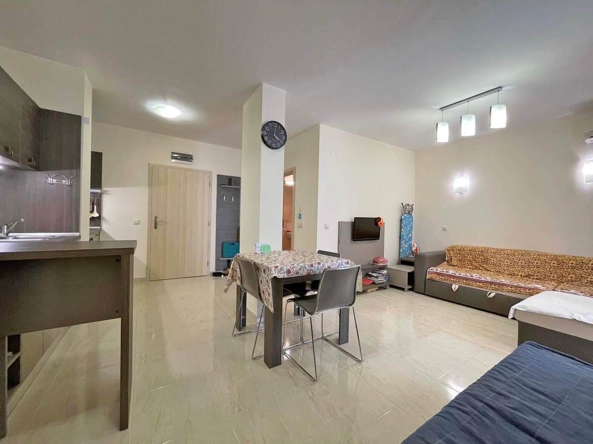 Новинка в Святом Власе! Уникальное предложение в ЖК Стар Дримс – всего 150 метров от берега и пляжа! Продается просторная студия площадью 47 кв.м, расположенная на первом этаже. Это идеальный выбор для тех, кто ценит комфорт и стиль. Студия уже оборудована полным комплектом мебели и бытовой техники, готова к вашему приезду. Вам остается только наслаждаться уютом и комфортом. До моря и пляжа всего пару шагов! А внутри комплекса вас ждут бассейны для взрослых и детей, зоны для загара, ресторан, бар, детская игровая площадка и многое другое. Здесь есть все, чтобы ваш отдых был незабываемым. Эта студия подходит для летнего отдыха, круглогодичного проживания и инвестиций. Отдыхайте здесь с удовольствием и получайте стабильный доход от аренды в периоды, когда вы не находитесь здесь сами. Вся городская инфраструктура находится в шаговой доступности. А если вам захочется разнообразия, то всего 1,5 км до Солнечного Берега и 3,5 км до аквапарка Action. Несебр, старинный город с богатой историей, всего в 8 км от вас. Удобная транспортная доступность – остановка автобуса в 500 м. А до аэропорта Бургас всего 30 км. Территория комплекса оборудована по последнему слову техники: контролируемый доступ, подземный и открытый паркинг, обустроенные зоны для отдыха и спорта. Не упустите шанс стать счастливым обладателем этой уникальной студии в ЖК Стар Дримс. Звоните нам по номеру +359894360292 в Болгарии. Контактные телефоны наших представительств в других странах можно найти на нашем сайте в разделе "Контакты". На нашем сайте вы найдете постоянно обновляемую базу объектов с описаниями, фотографиями и актуальными ценами. Ознакомьтесь с жилыми комплексами на морских курортах и в горнолыжных регионах Болгарии – ваша мечта ждет вас! Не упустите возможность приобрести свой уголок рая у моря – ЖК Стар Дримс ждет вас!