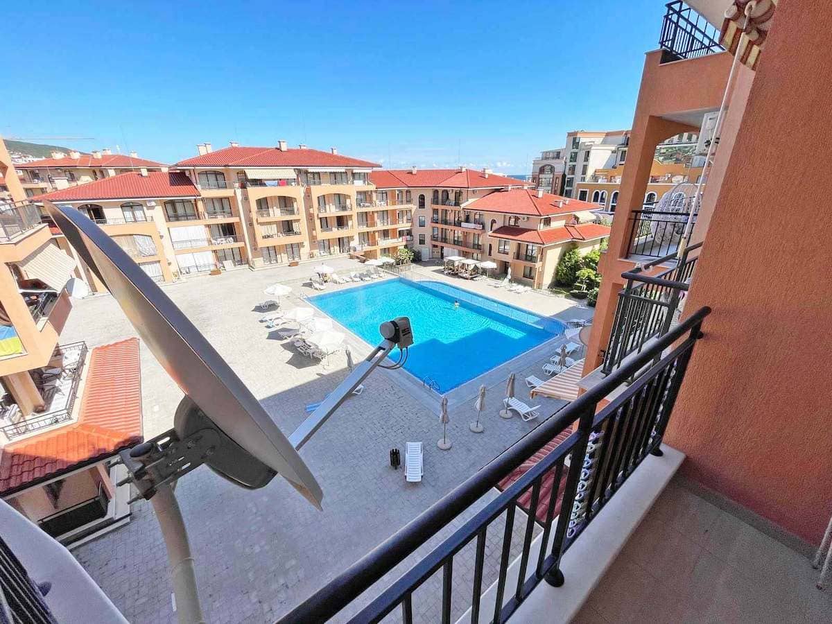 Этот апартамент – идеальный вариант для летнего отдыха, круглогодичного проживания и инвестирования. В шаговой доступности от комплекса находится вся городская инфраструктура. Солнечный Берег всего в 1,5 км, аквапарк Action – в 3,5 км, а старинный город Несебр – всего 8 км. Остановка автобуса находится всего в 500 м, и до аэропорта Бургаса всего 30 км.