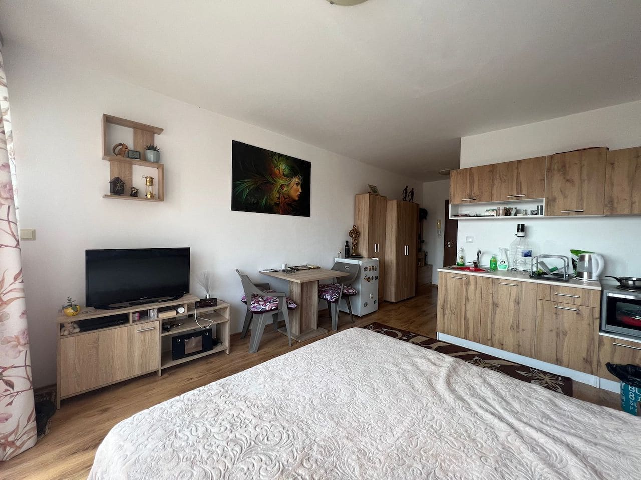 Представляем вашему вниманию уникальное предложение - просторную студию в живописном жилом комплексе на берегу моря в Святом Власе, Болгария. Эта уютная квартира общей площадью 40 квадратных метров находится на пятом этаже в закрытом комплексе с круглосуточной охраной и строгим контролем доступа. Живописное побережье Святого Власа и роскошная Марина Диневи находятся всего в нескольких минутах пешей прогулки от вашей двери, а аэропорт города Бургас всего в 30 километрах. Эта квартира продается полностью меблированной и с бытовой техникой. В ванной комнате установлена современная душевая кабина, а с балкона открывается потрясающий вид на бассейн и ухоженную территорию жилого комплекса. Ваш комфорт обеспечивается кондиционером, установленным в комнате. Жилой комплекс занимает прекрасное местоположение в хорошо развитом районе курорта, в 100 м от моря и его территория ухожена и озеленена. Здесь вы найдете всевозможные удобства для жильцов и гостей, включая два бассейна, бар у бассейна, лобби с баром, открытую джакузи, летний сад на крыше с потрясающим видом на море и исторический город Несебр. Для детей оборудована игровая площадка, а владельцам автомобилей доступен открытый паркинг неподалеку от комплекса. Круглогодичное обслуживание и поддержка жилого комплекса делают его идеальным выбором для летнего отдыха, постоянного проживания или инвестиций. А самое лучшее - налог на обслуживание составляет всего 12 евро за квадратный метр в год. Не упустите этот шанс! Приобретите эту уникальную студию в жилом комплексе Royal Palm уже сегодня. Обращайтесь в агентство Lev & Mar Group, и мы гарантируем вам полное юридическое сопровождение на каждом этапе сделки. Мы работаем исключительно с надежными застройщиками. Звоните нам по номеру +359894360292 и узнайте больше о этом уникальном предложении. Ваши мечты о недвижимости в Болгарии сбудутся с нами!