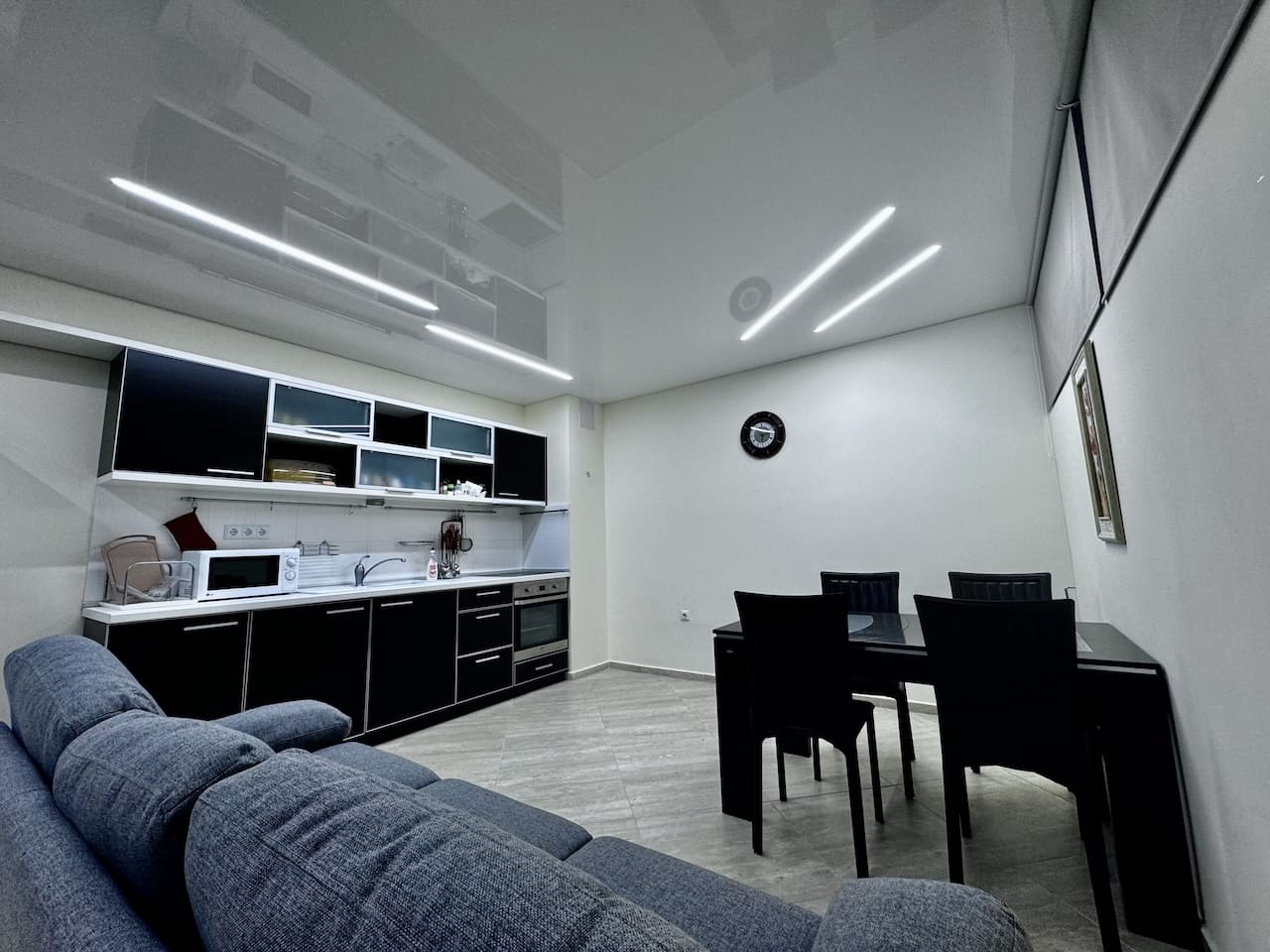 Гостиная с полностью оборудованной кухней.