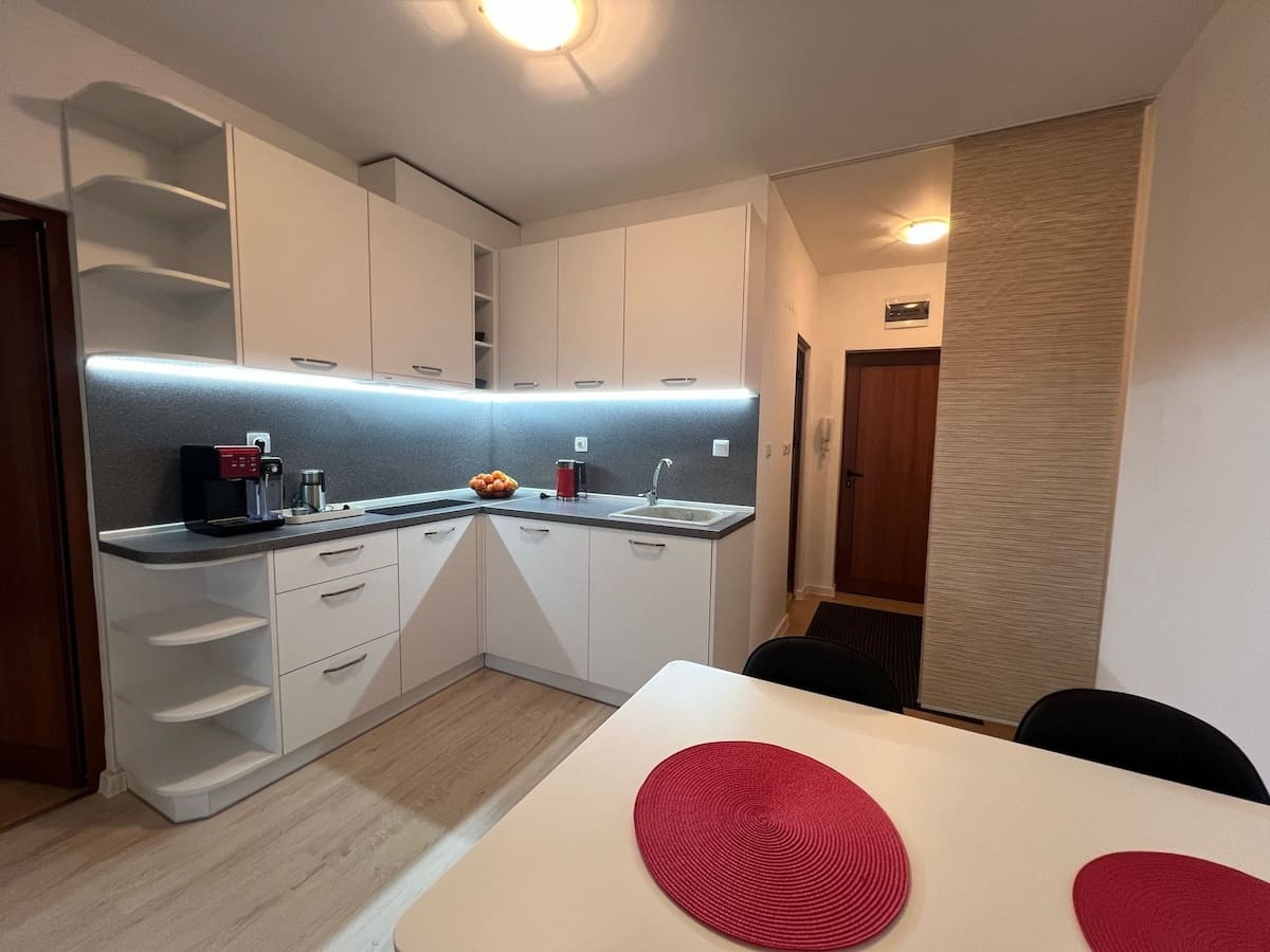 Полностью обустроенная квартира с просторной гостиной, уютной кухней и столовой, а также отдельной спальней для максимального комфорта.