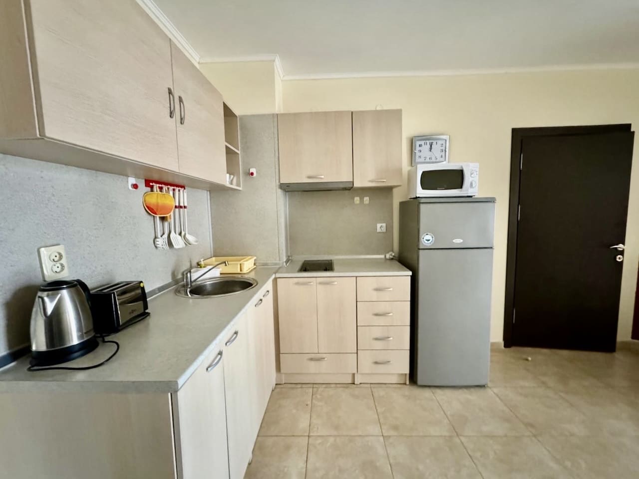 Апартаменты находятся всего в 5 минутах ходьбы от пляжа "Затонувшего корабля" и в 15 минутах от центра курорта. Рядом расположен аквапарк "Парадайз" и вся необходимая инфраструктура для комфортной жизни круглый год.