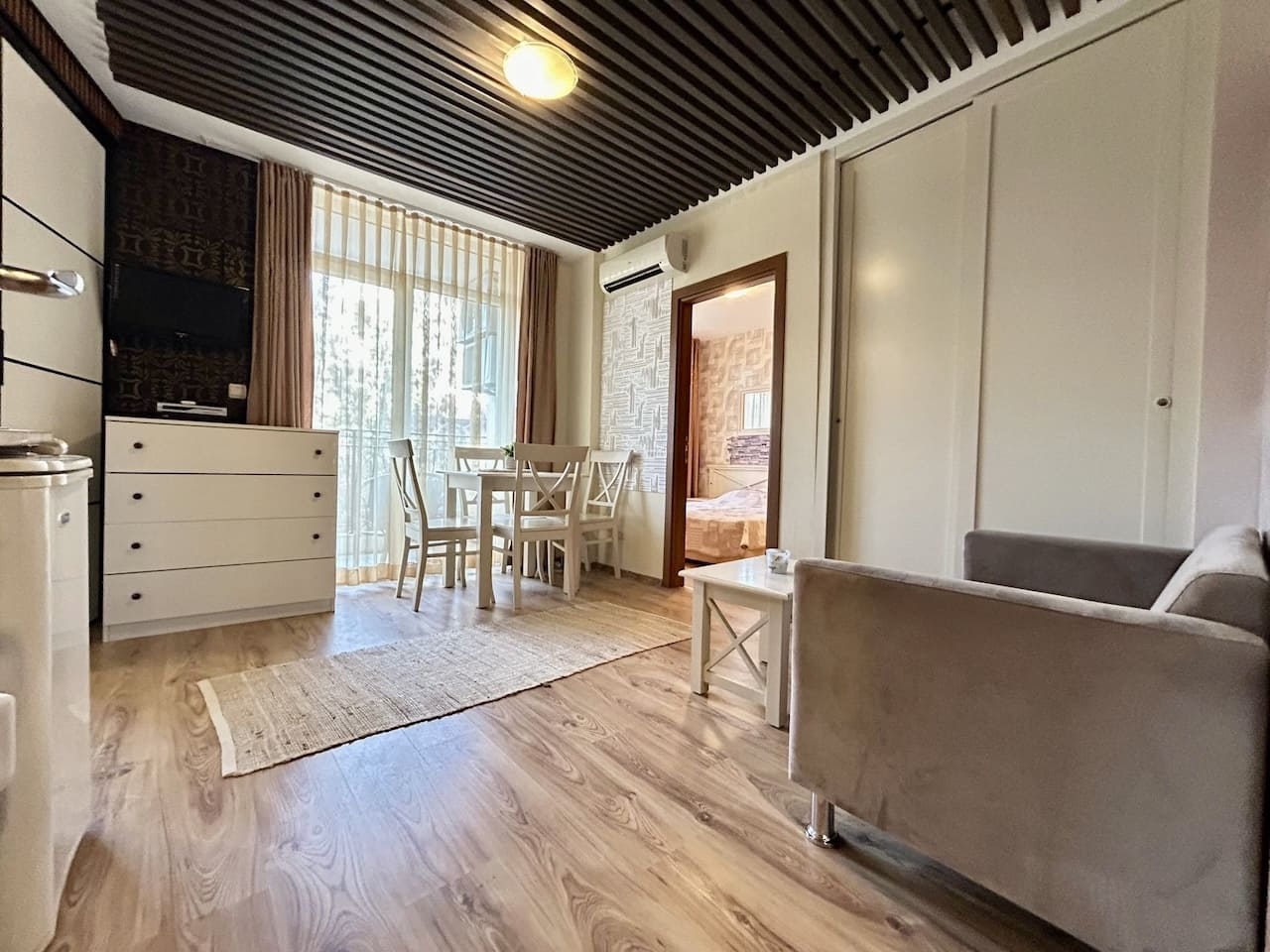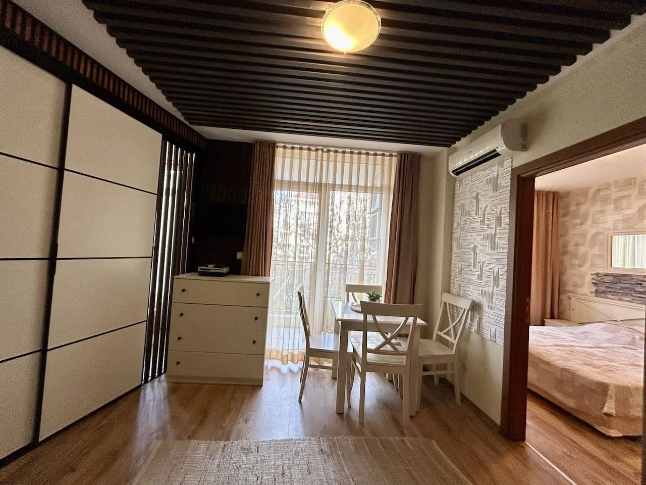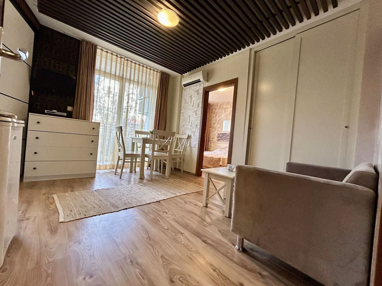 Жилой комплекс предлагает широкий спектр развлечений, включая сезонный плавательный бассейн, детскую площадку, ресторан с разнообразным меню и многое другое. Благоустроенная территория с ландшафтным дизайном создаёт уютную атмосферу для вашего отдыха.