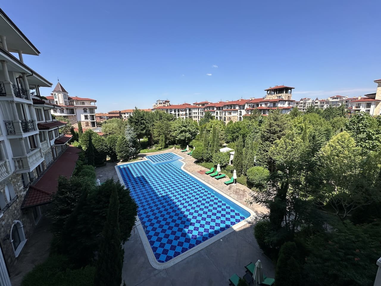 Несколько бассейнов для взрослых и детей, оборудованные лежаками и зонтиками, подарят вам водные забавы и освежающее купание.