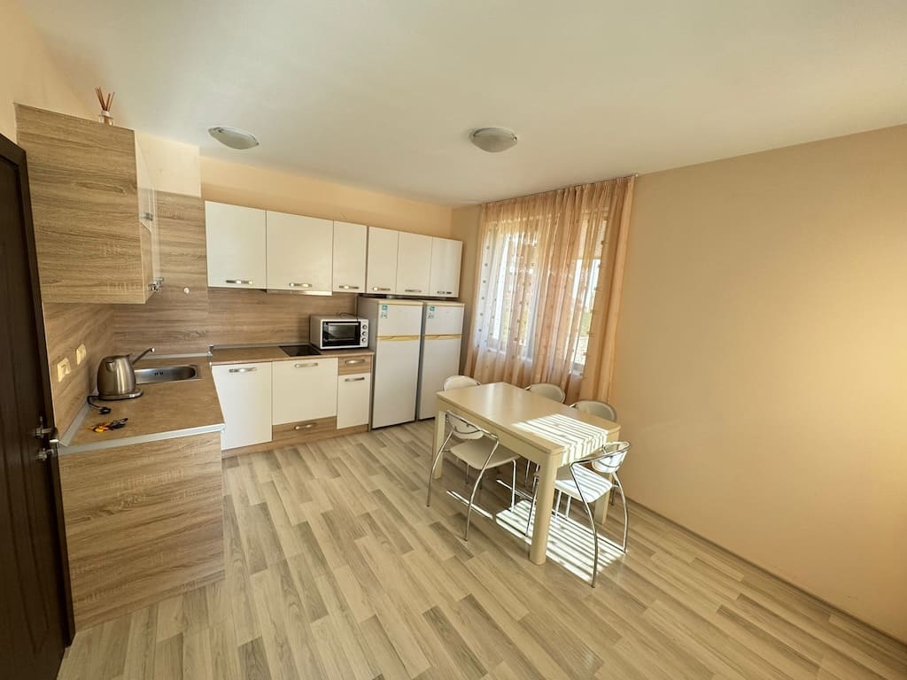 Квартира в жилом комплексе Аполлон Несебр — это уникальная возможность стать собственником жилья в хорошем районе. Всего в 5 минутах от моря и пляжа, она идеально подходит для летнего отдыха и для постоянного проживания. Близость к аквапарку (около 10 мин пешком) и исторической части города Несебр (всего 2,5 км) добавляет привлекательности этому предложению. В 50 м от ЖК остановка общественного транспорта, что облегчает передвижение по курортным городам. Квартира выгодно отличается не только местоположением, но и качеством строительства. Для будущих владельцев здесь предусмотрен низкий ежегодный сбор за обслуживание — всего 12 евро за кв.м.