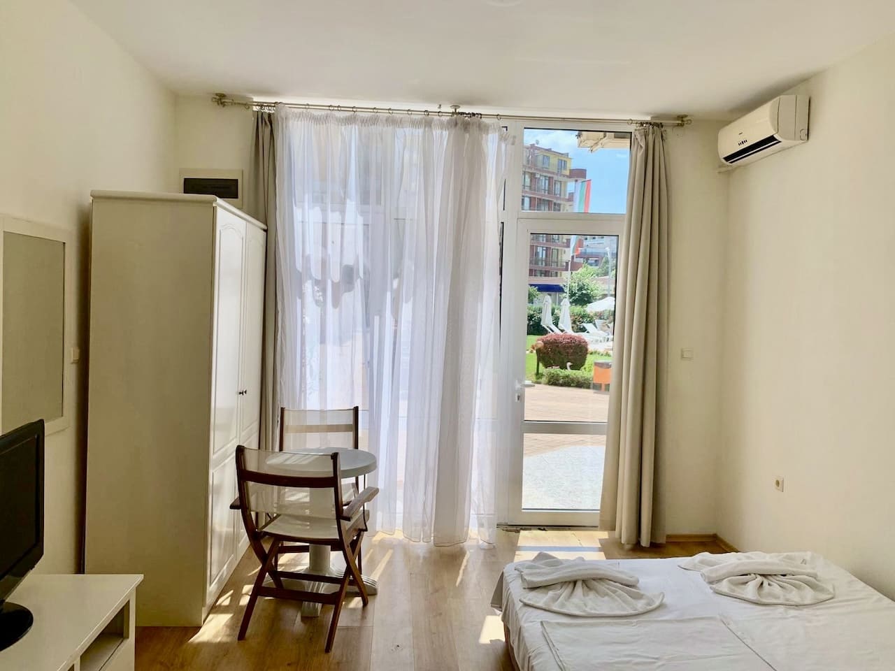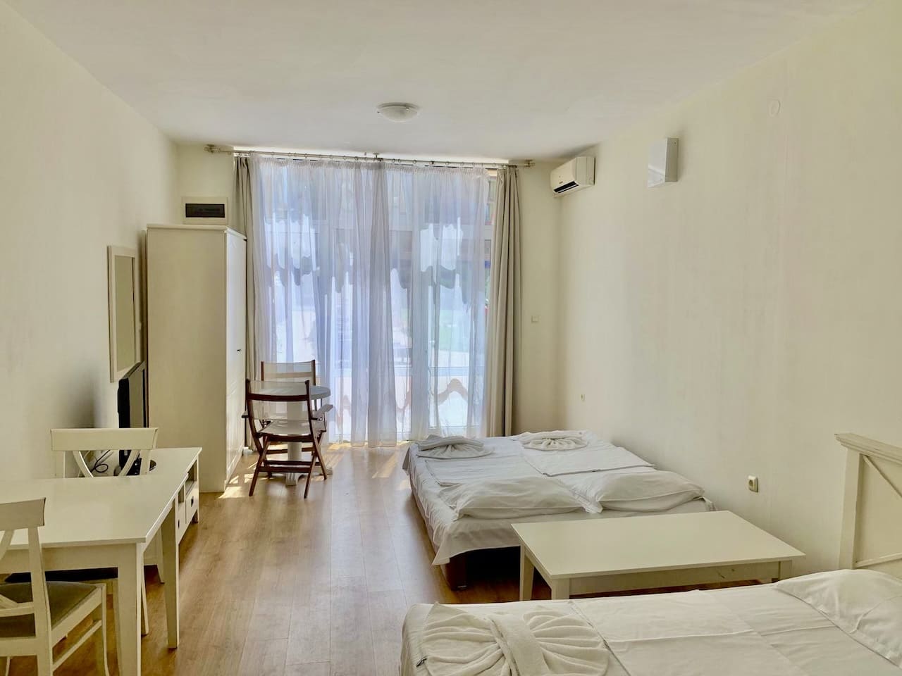 Комплекс находится в самом центре Солнечного берега, всего в 500 метрах от моря — прогулка до пляжа займёт не больше 7 минут 🚶♀🚶♂. По дороге — кафе, магазины, аптеки, автобусная остановка.