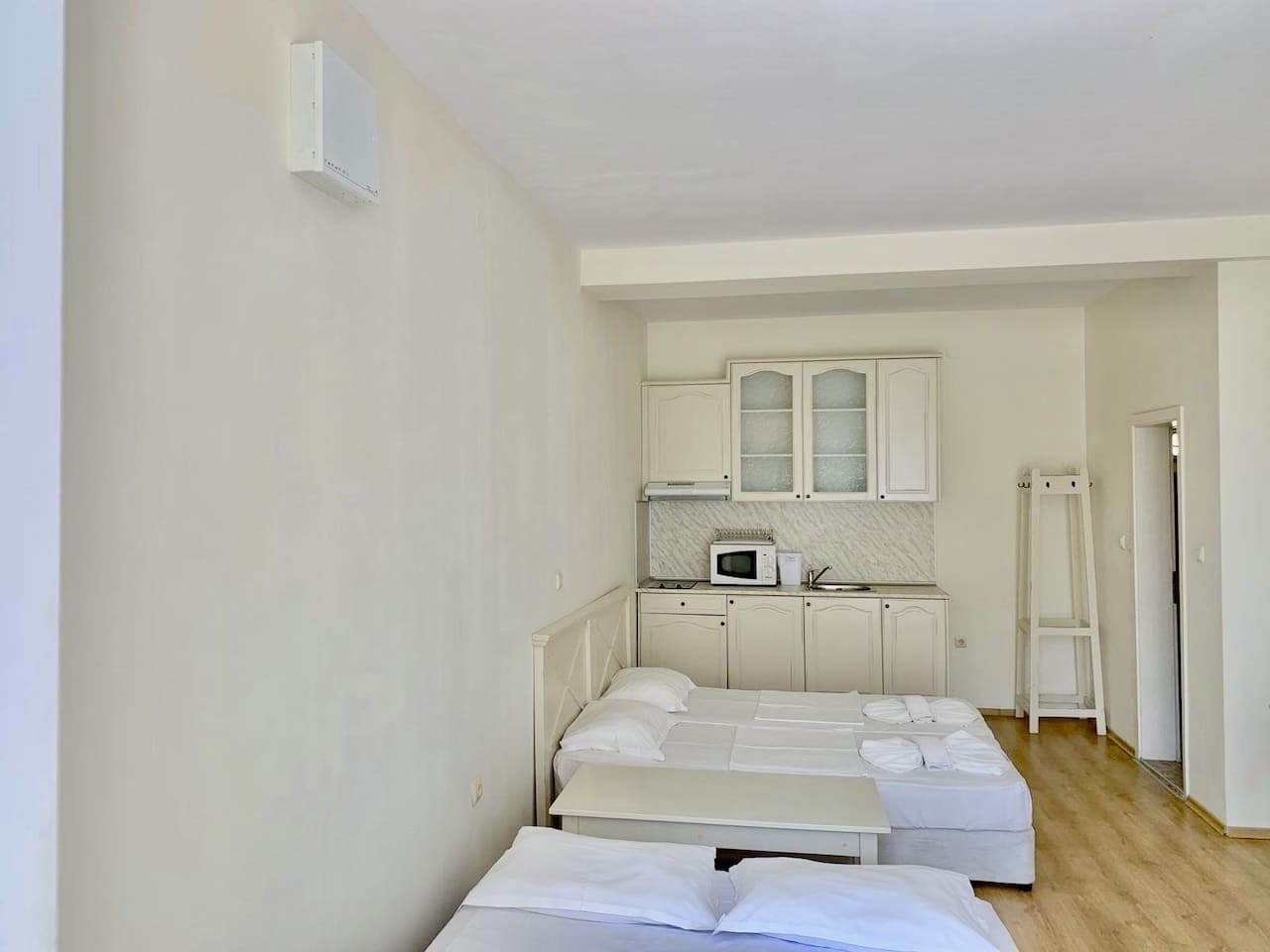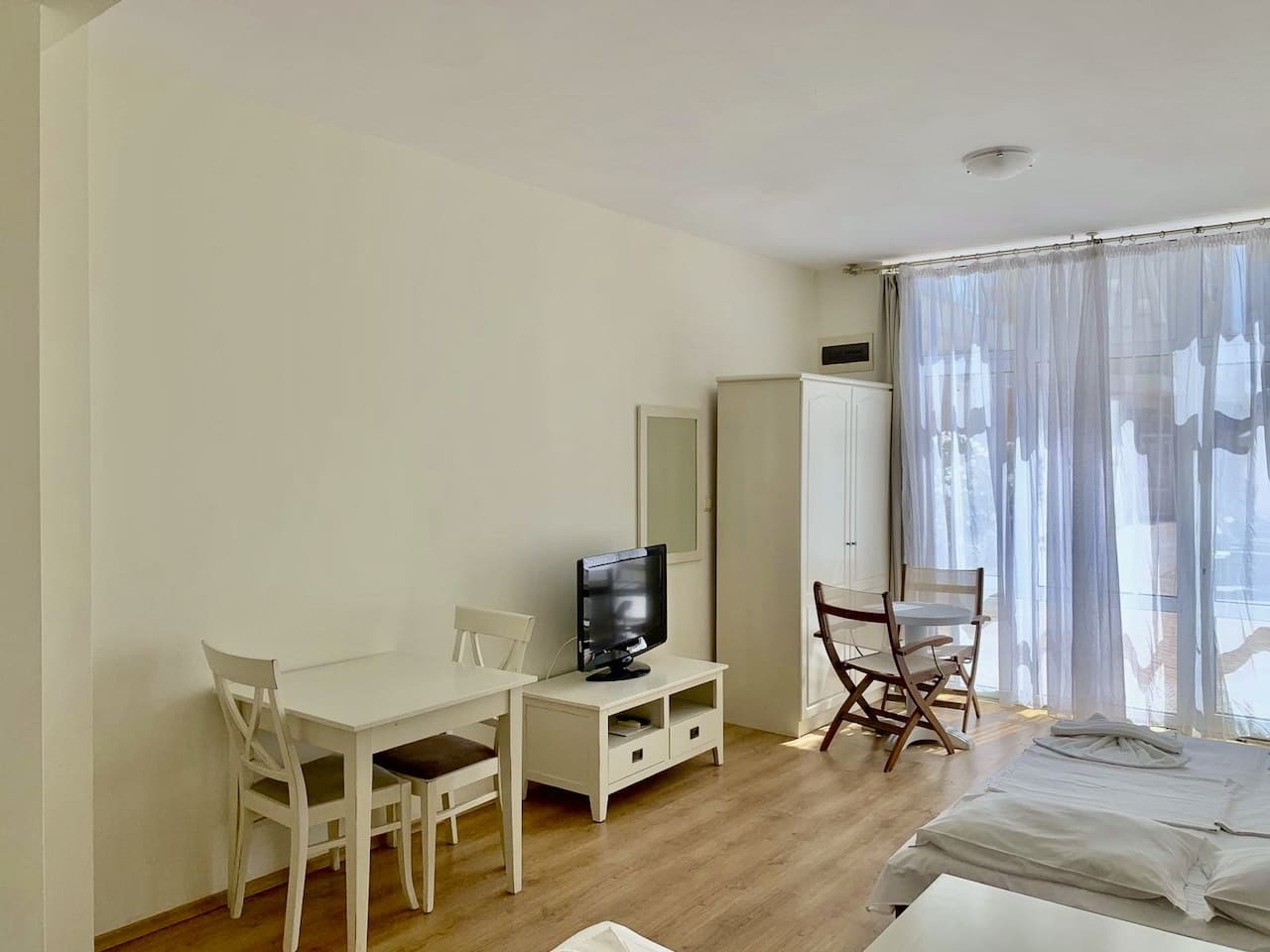 В нескольких минутах — центральная пешеходная улица с её вечерней атмосферой, аттракционами, рынками, детским смехом и мороженым. А всего в 2 км — старинный Несебр, где можно гулять по мощёным улочкам, наслаждаясь историей и морскими панорамами.