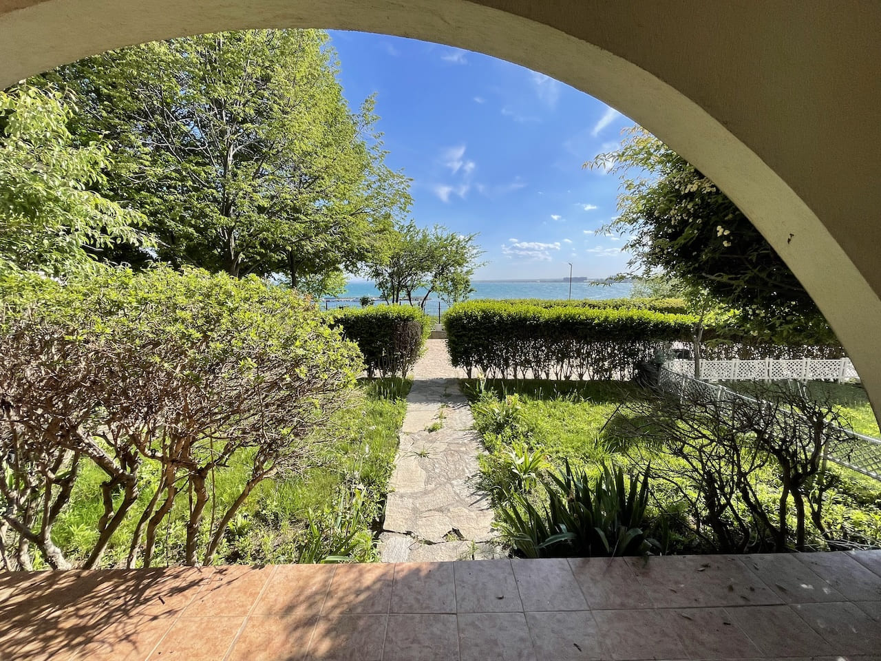 - 🌴 Просторная открытая терраса в тени арки с видом на море и выходом в сад 🌿