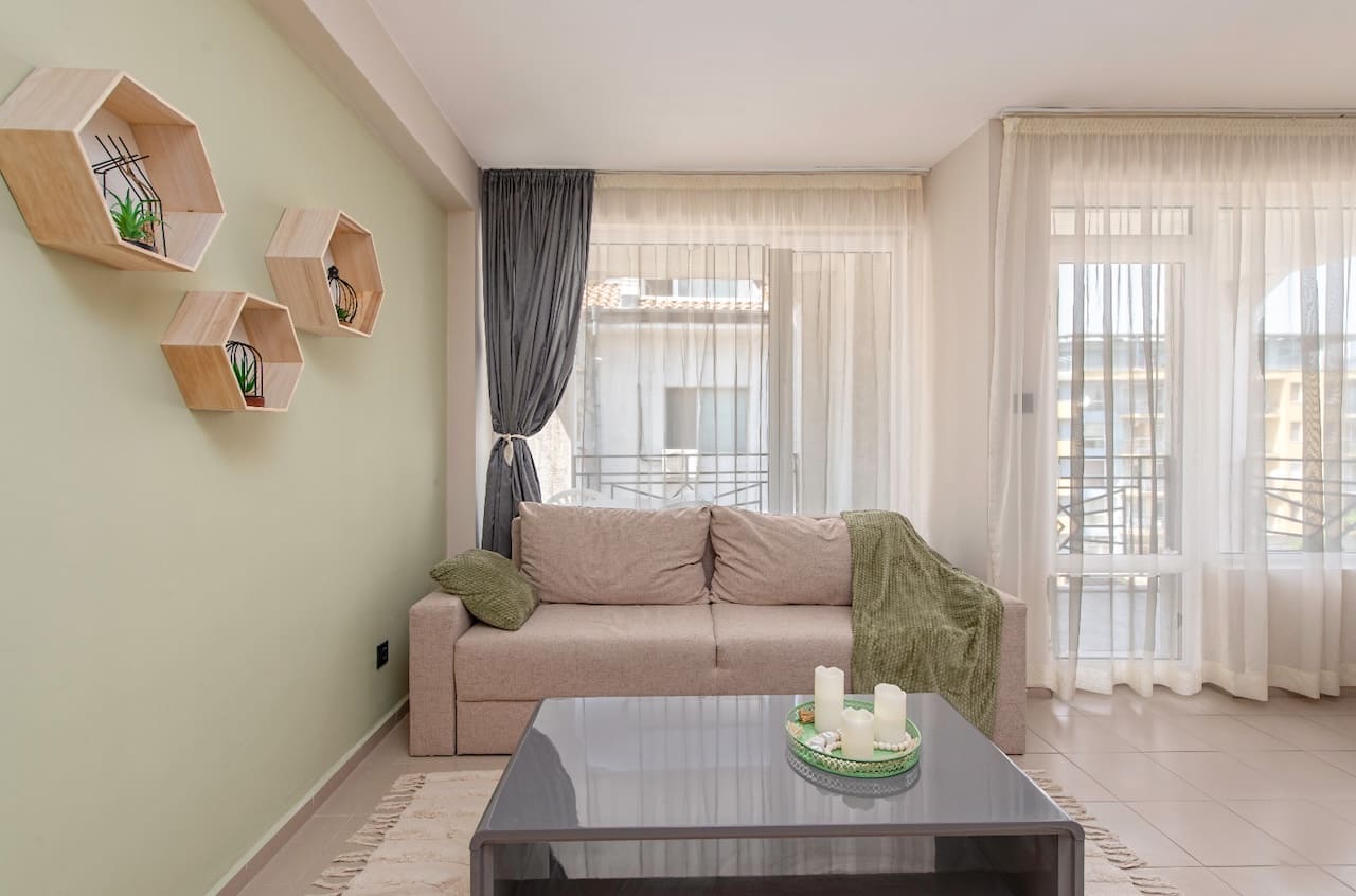 Представьте утро: вы открываете окна, а в лицо мягко дует свежий морской ветер. Вокруг — зелень, тишина и тёплое солнце. До пляжа всего 600 метров — можно идти босиком. Эта квартира — идеальное пространство для тех, кто ищет отдых, уют и возможность жить у моря в своём ритме.