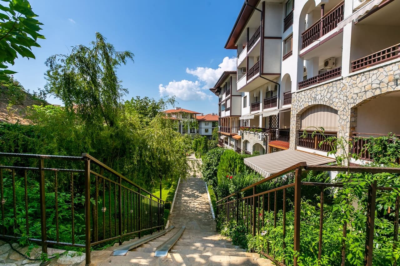 Комплекс построен в 2009 году и выполнен в болгарском традиционном стиле: белые фасады, натуральный камень, крыши из черепицы и просторные террасы. На территории — богатая инфраструктура.