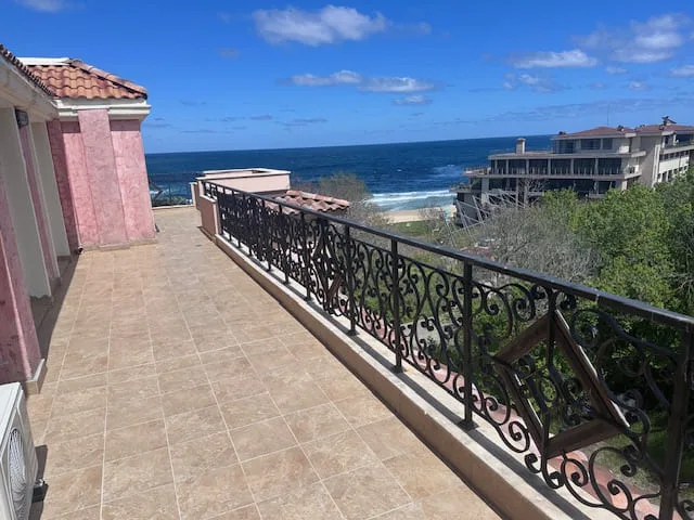 Такое предложение бывает редко и ненадолго: квартира с видом на море из каждой комнаты, террасой на 80 квадратов, в закрытом комплексе с бассейном и СПА, на первой линии в Созополе.