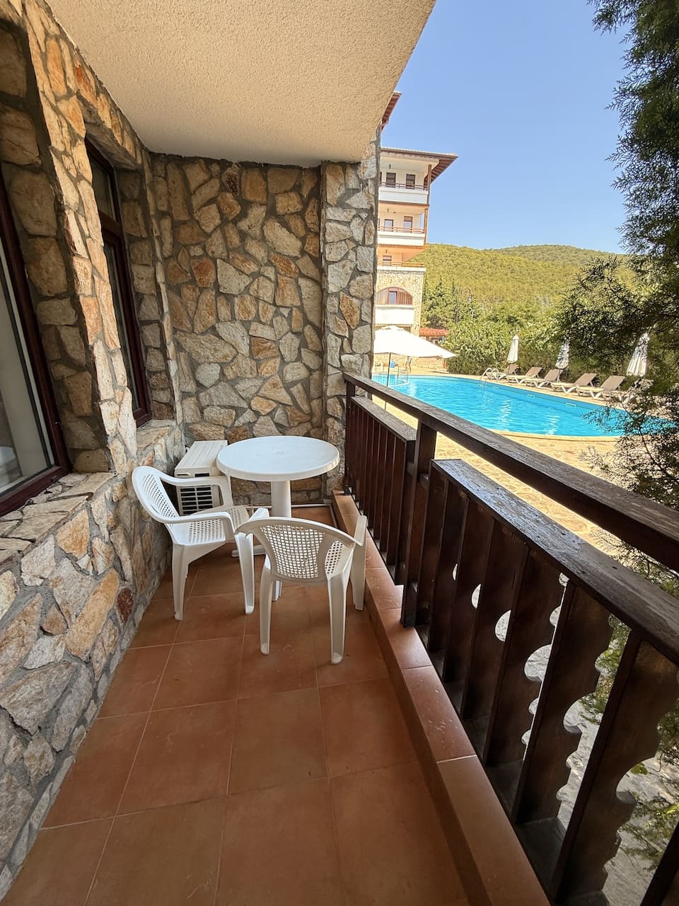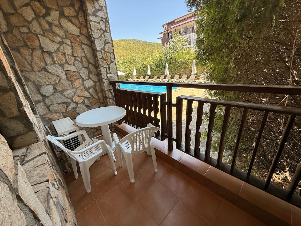- терраса с видом на бассейн и зелёную территорию 🌿