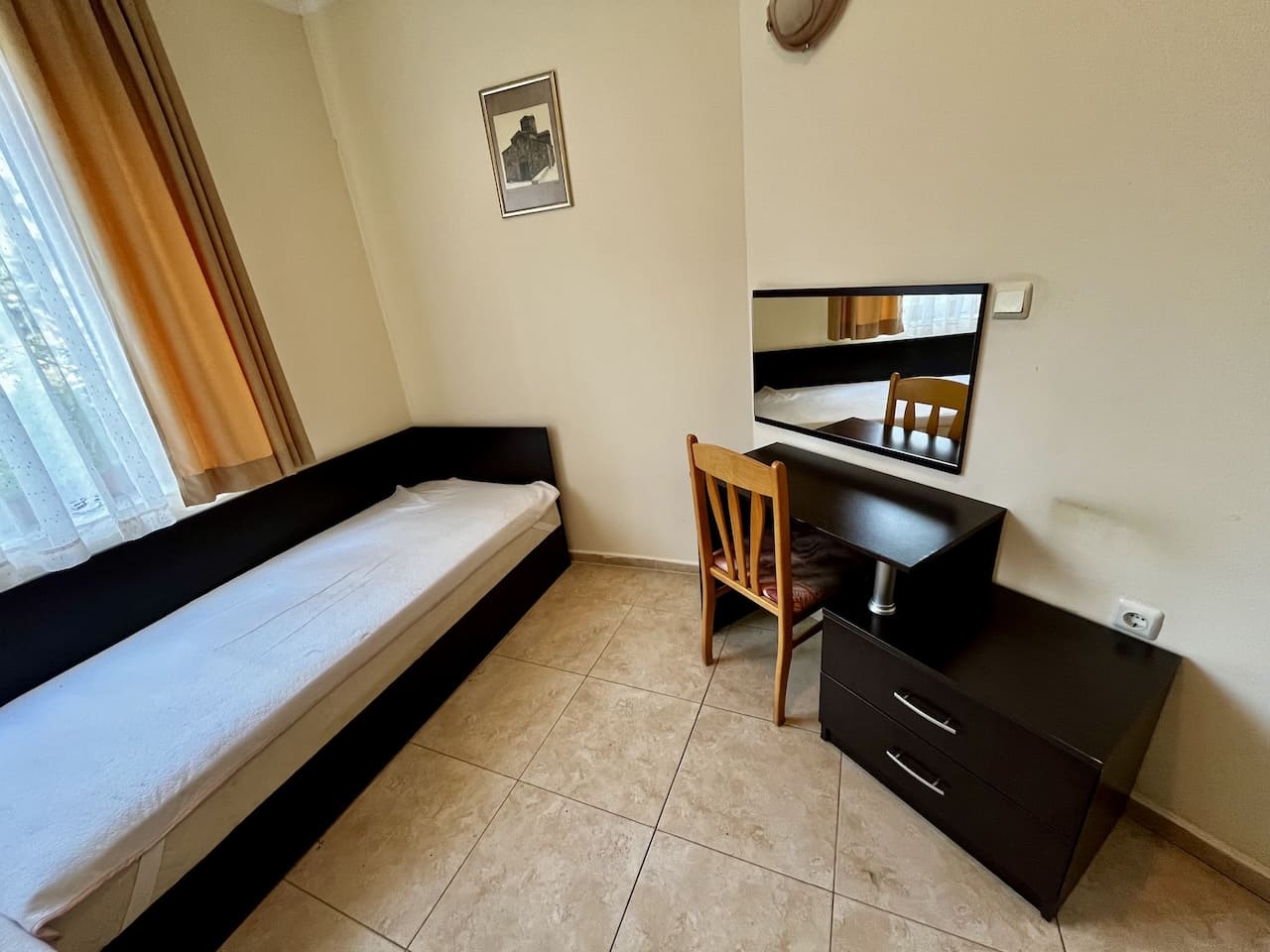 Представьте утро с чашкой кофе на террасе, где вас встречают пение птиц, аромат хвои и шелест листвы. Всего в 200 метрах — песчаный пляж с бирюзовой водой. Это не мечта — это ваша новая трёхкомнатная квартира в комплексе закрытого типа Apollon 5, в зелёном районе Аурелия между Несебр и Равда.