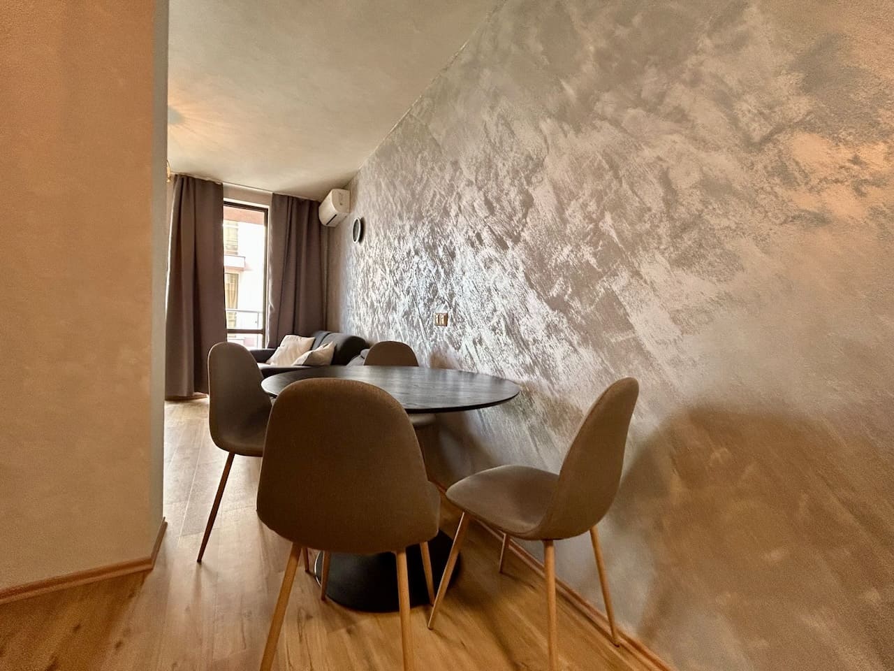 Внутри — древесные фактуры, стильные светильники, новые шторы и мягкие ткани. Минимализм, который даёт ощущение спокойствия и пространства.