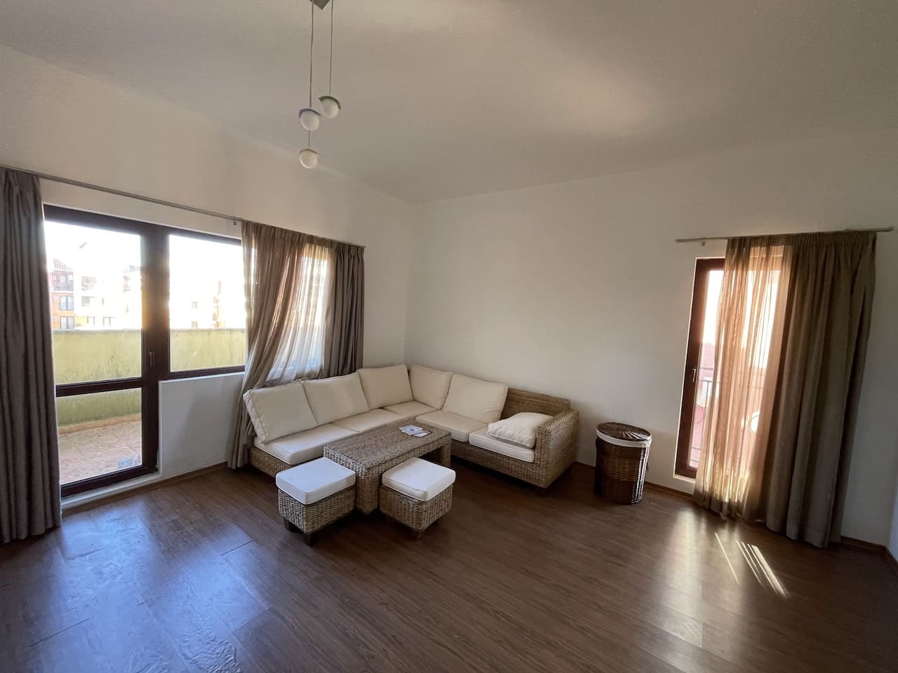 102 м² — редкая площадь даже для комплекса Marina Cape. Высокие потолки, большие окна, мягкие тёплые оттенки интерьера создают ощущение виллы у моря, а не просто квартиры.