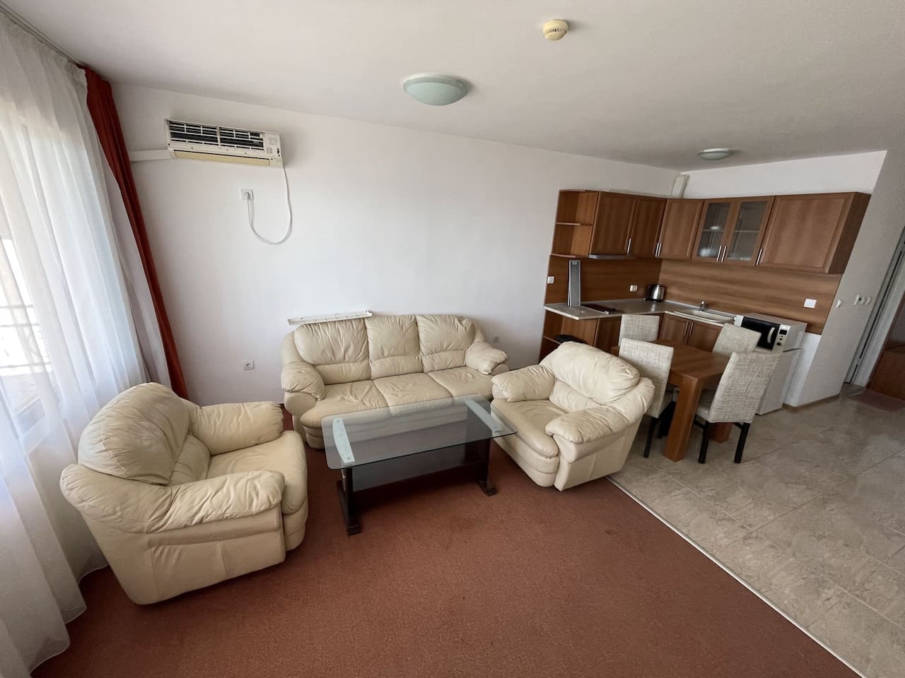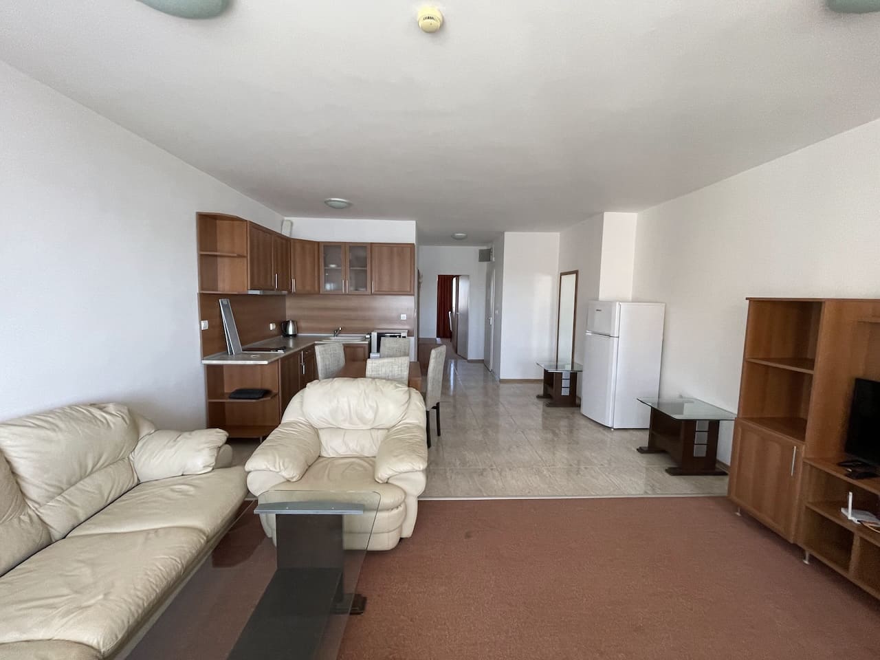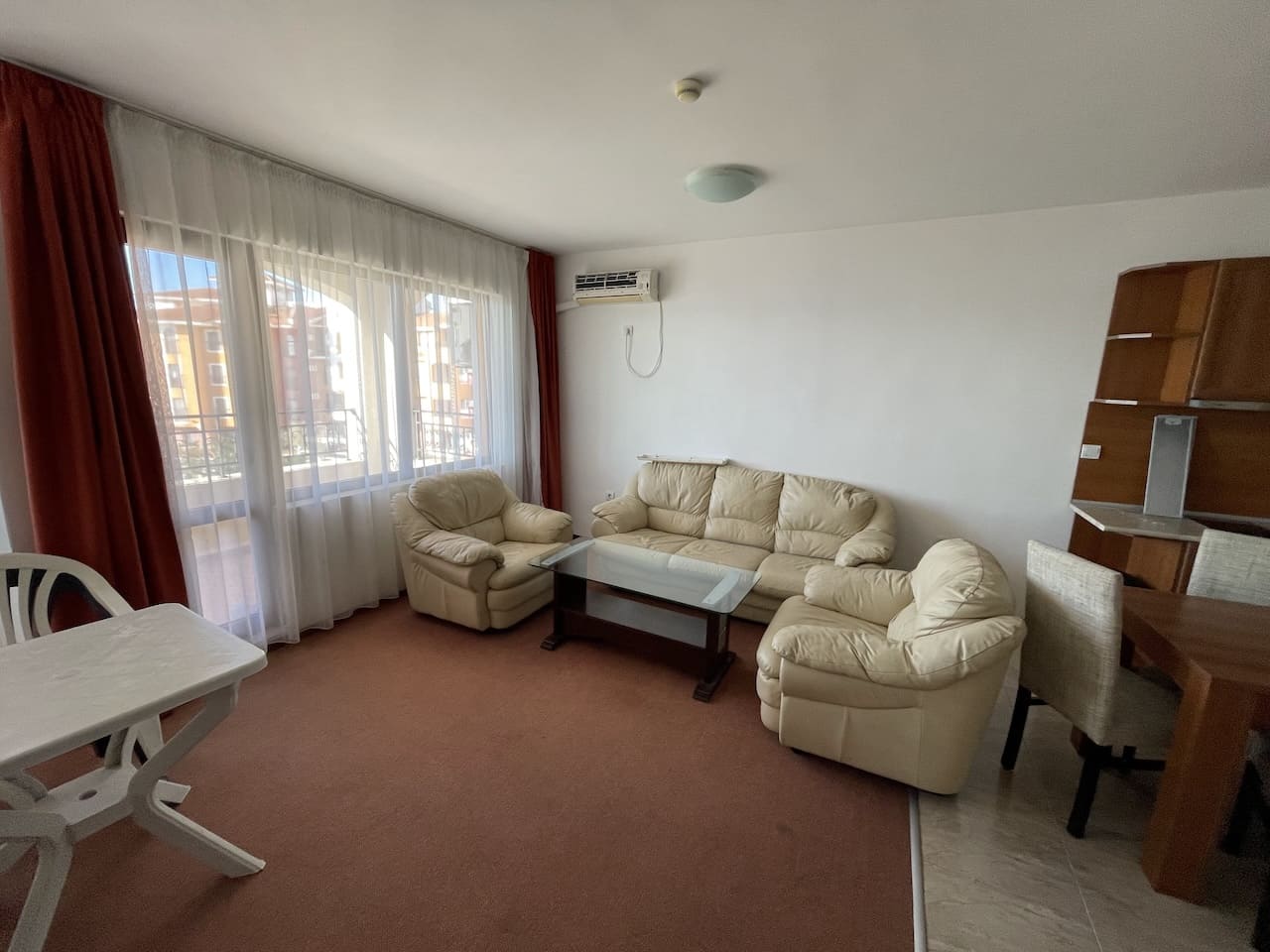 Общая площадь — 79,65 м², продуманная планировка, высокий шестой этаж — и, как результат, потрясающий вид на море и бассейн прямо из вашей гостиной и с уютной террасы. Квартира полностью меблирована, аккуратная, светлая, с большими окнами и тёплым естественным освещением.