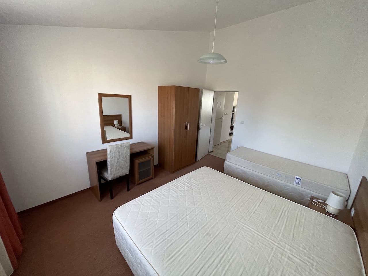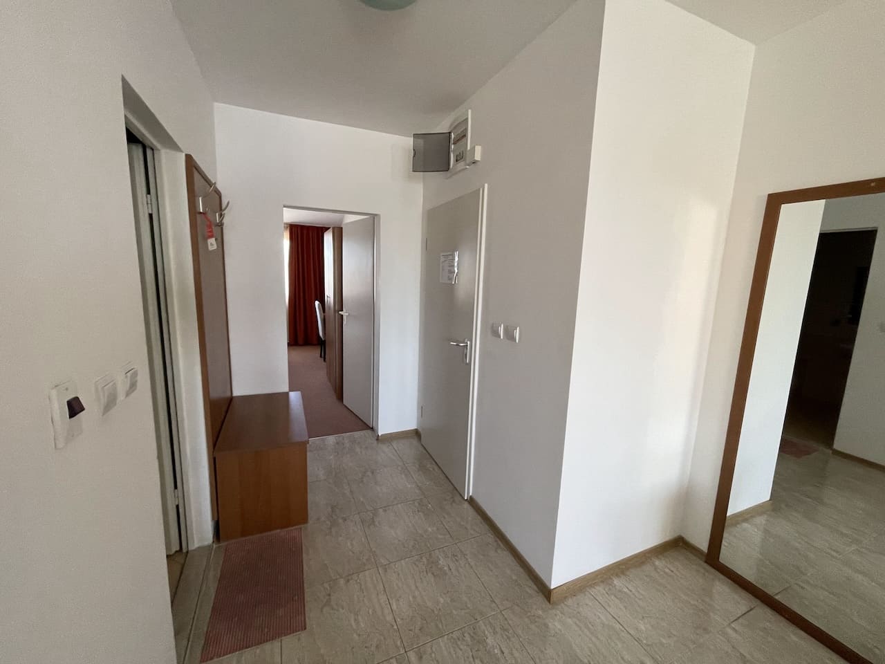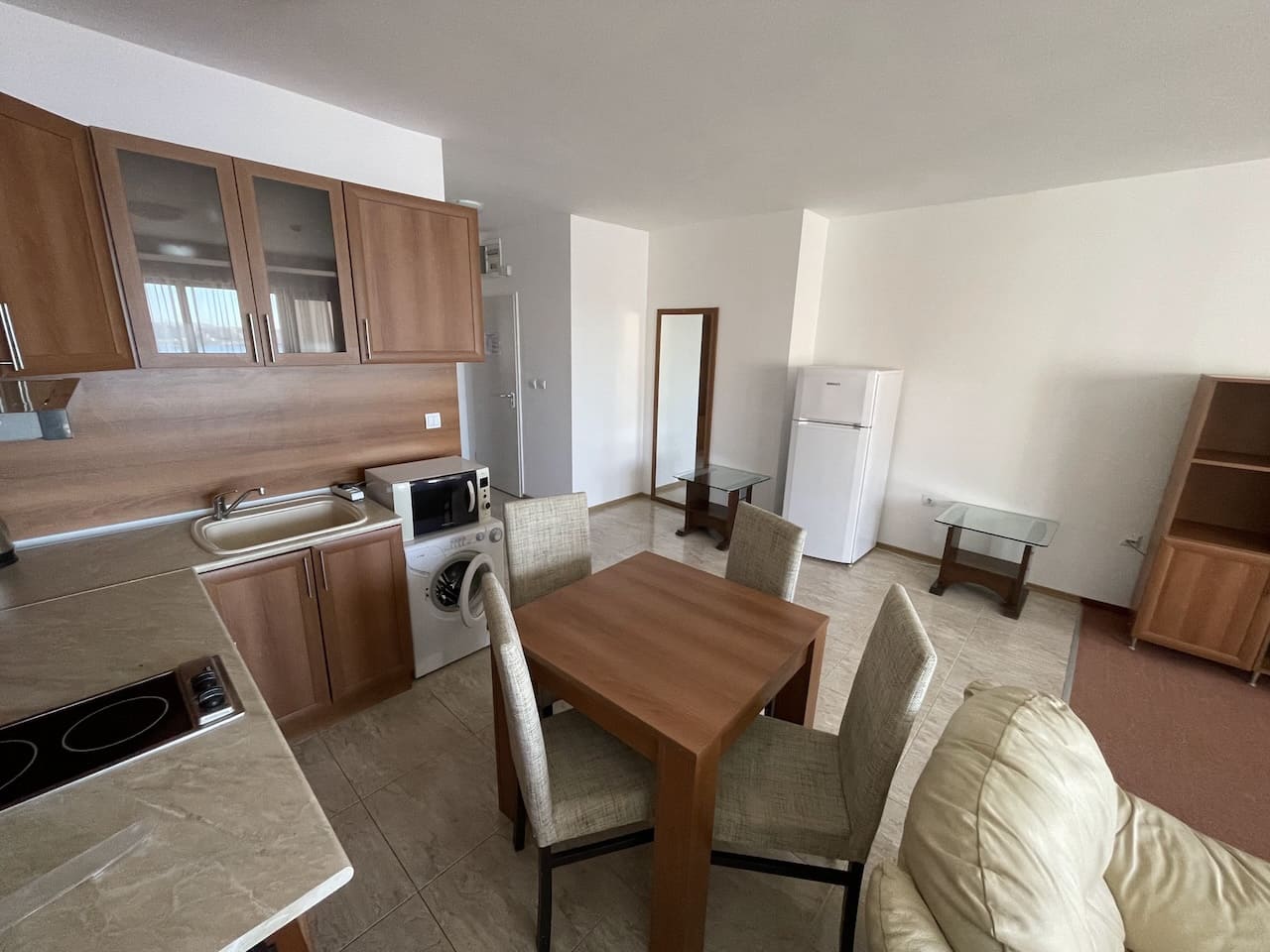 Общая площадь — 79,65 м², продуманная планировка, высокий шестой этаж — и, как результат, потрясающий вид на море и бассейн прямо из вашей гостиной и с уютной террасы. Квартира полностью меблирована, аккуратная, светлая, с большими окнами и тёплым естественным освещением.