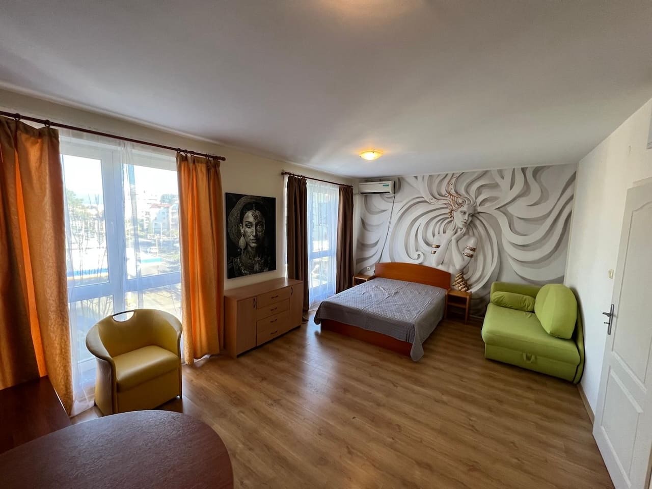 Из окон открывается вид на курорт. В комнате установлен кондиционер ❄️, проведены интернет и телевидение. Коммунальные платежи — по бытовым тарифам.