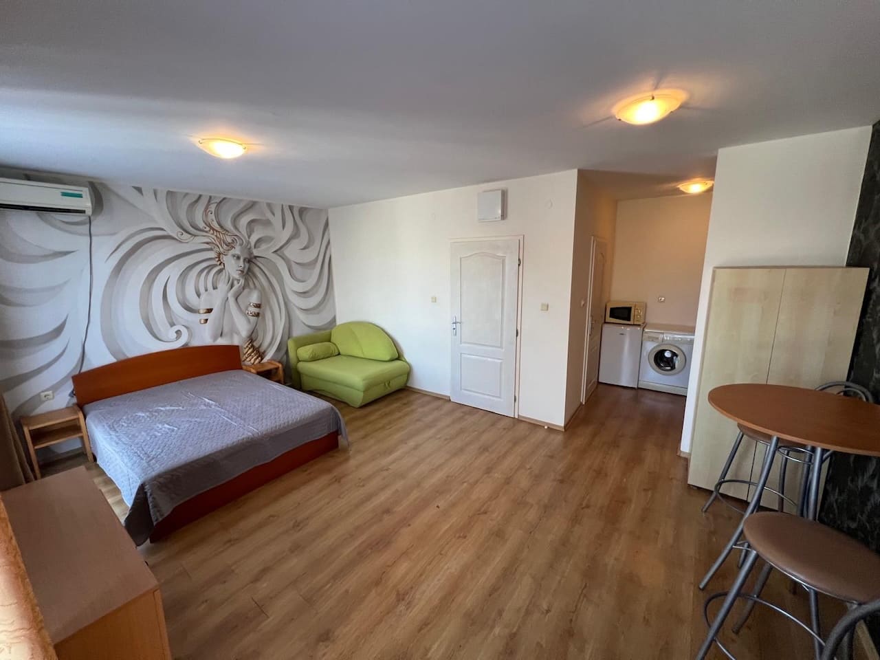 Студии с площадью почти 50 м² в центре Солнечного Берега — редкость. Здесь площадь, планировка и локация работают в пользу собственника.