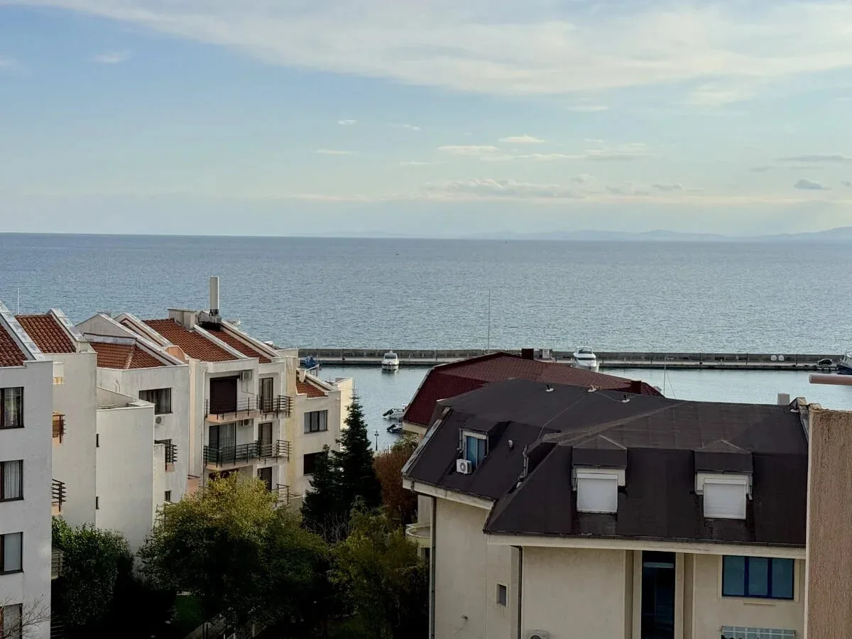 🌅 Вид с террасы и из окон выходит в сторону Несебрского залива и марины «Марина-Диневи» — именно этот открытый горизонт формирует ощущение свободы и уровня места, которое редко встречается в курортной застройке.
