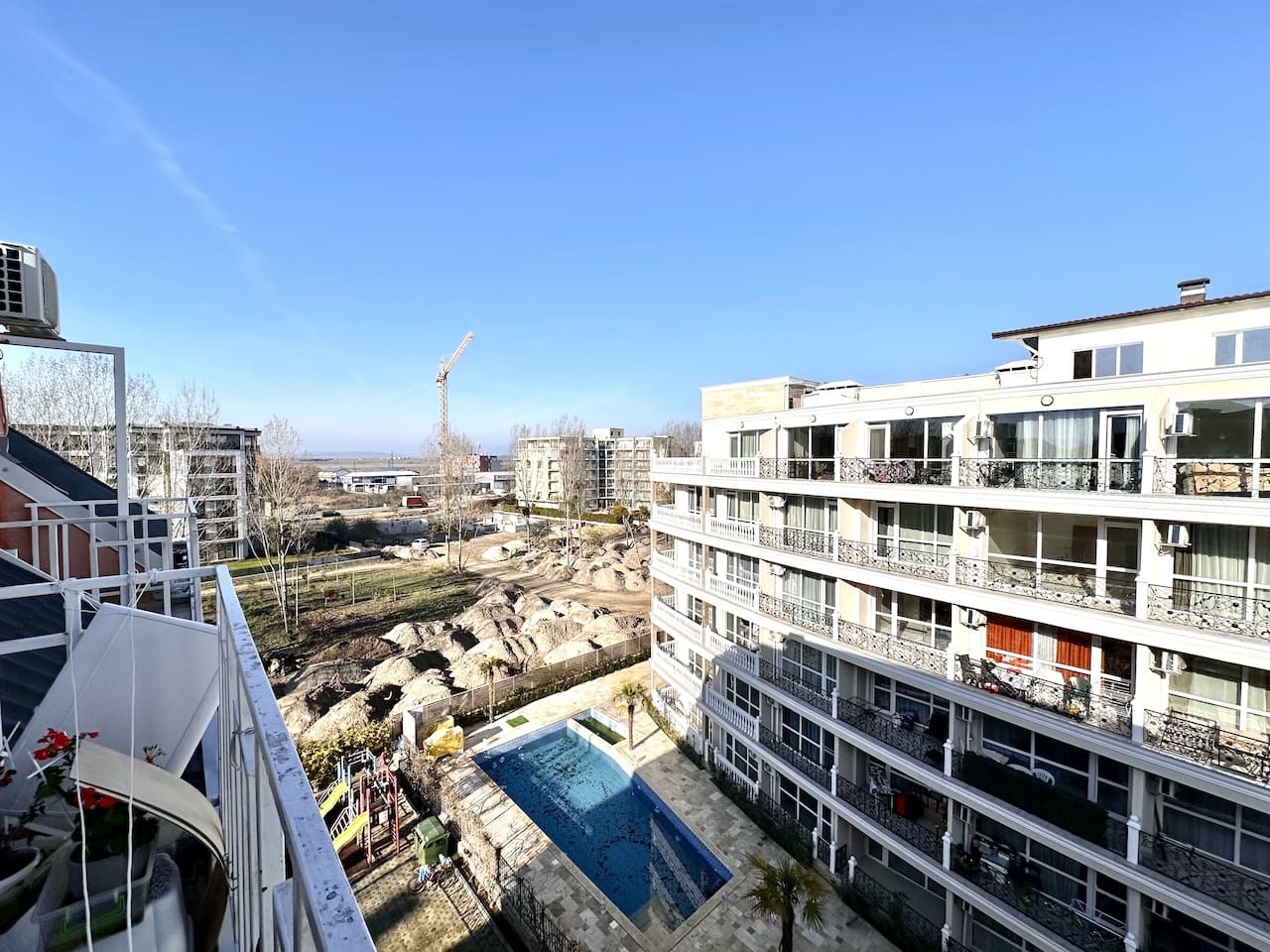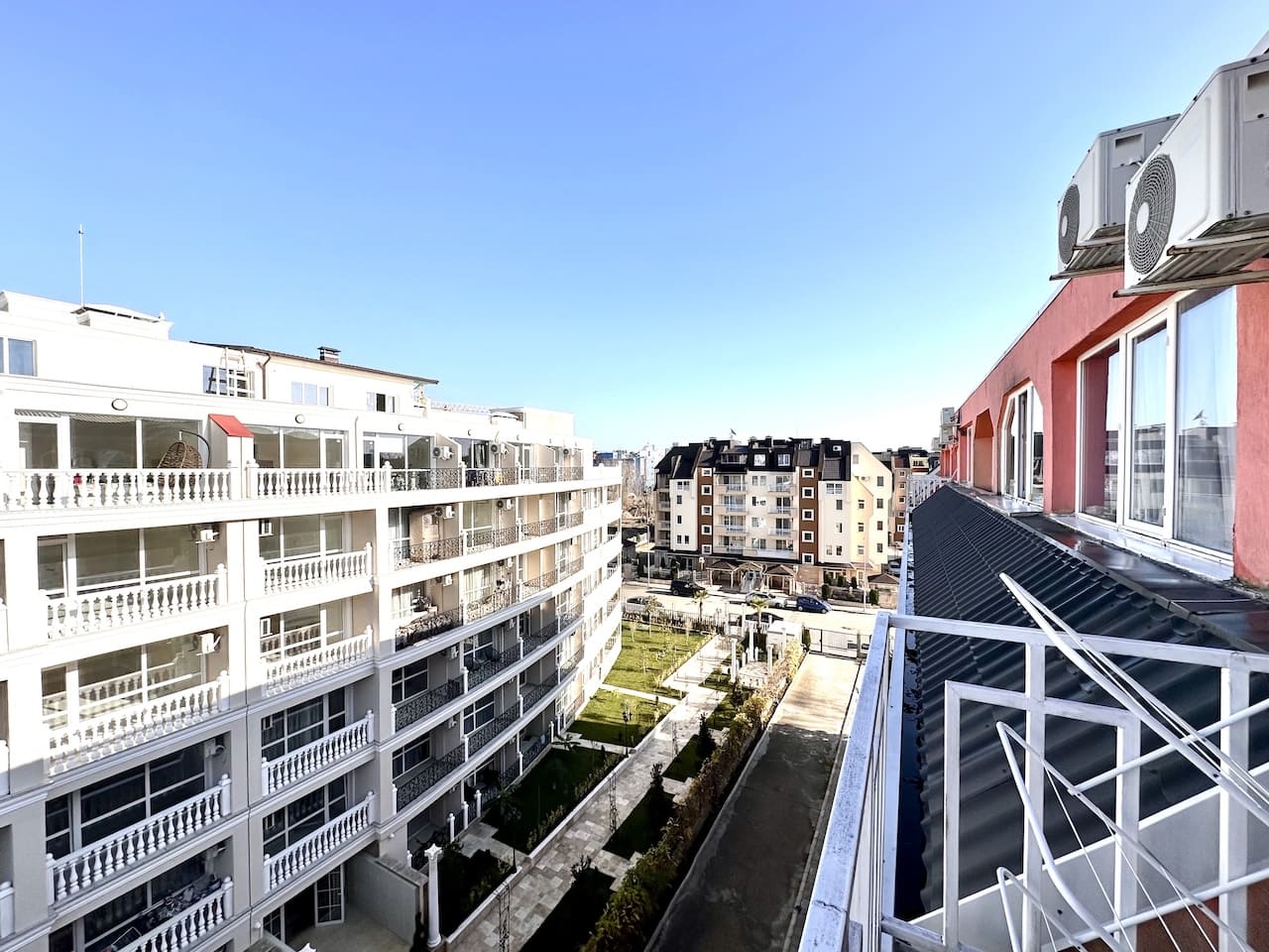 Комплекс расположен в спокойной части курорта Солнечный берег, примерно 800 метров от пляжа и моря. Это расстояние удобно для пеших прогулок и одновременно защищает от шума первой линии.