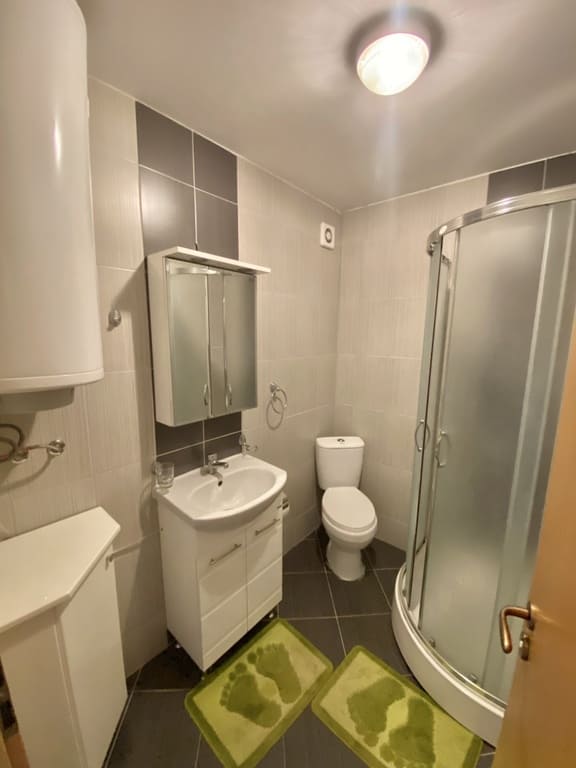 Кухня укомплектована, техника встроена, мебель нейтральная и аккуратная. Состояние квартиры — хорошее, без необходимости срочных вложений. Санузел с душевой кабиной — практичный, ухоженный, без визуального шума.
