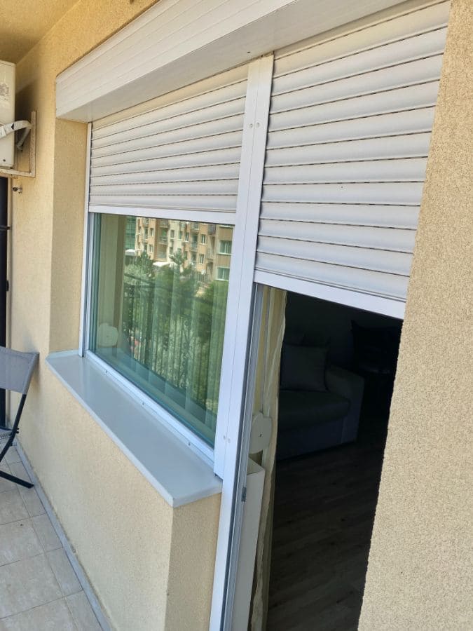 На окнах и двери на террасу установлены рольставни, есть кондиционер, проведены интернет и телевидение.