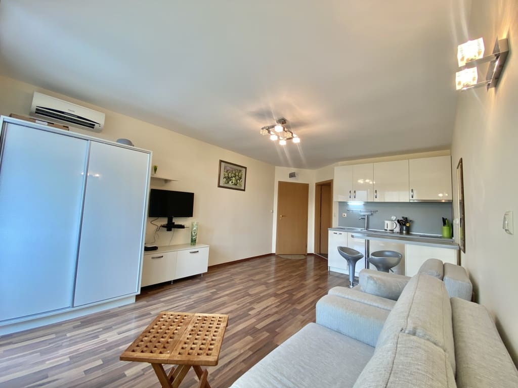 Северная часть Солнечного Берега — район, который часто начинают ценить уже после первого сезона. До моря и оборудованного пляжа — около 10 минут пешком, до центра курорта — около 20 минут прогулки.