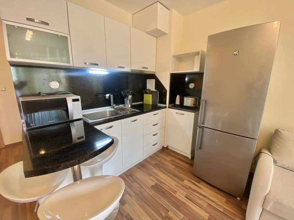 Кухня компактная, но полноценная 🍽️ — готовить удобно, рабочие поверхности сохранены, техника подобрана без излишеств. Зона отдыха легко трансформируется: днём — светлая гостиная, вечером — полноценное спальное место.
