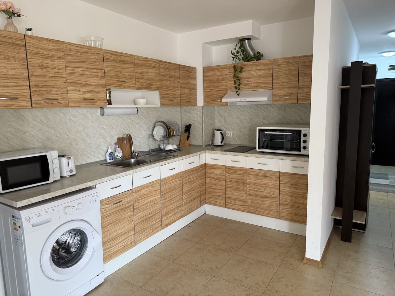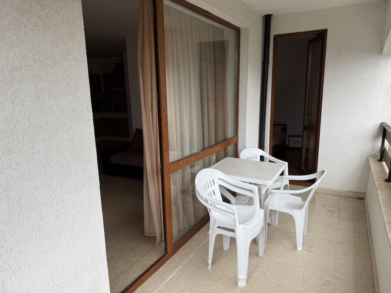 Две отдельные спальни дают редкое для курортной недвижимости ощущение личного пространства. Это особенно важно, если вы планируете приезжать семьёй или сдавать квартиру в аренду нескольким гостям. Санузел с душевой кабиной в рабочем, аккуратном состоянии — без сюрпризов и скрытых проблем.