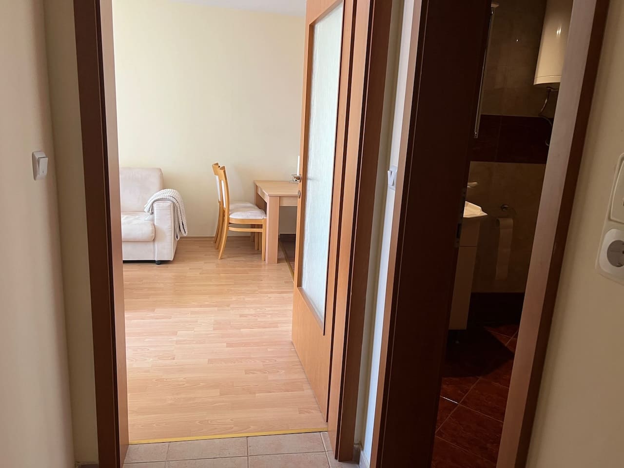 Локация — одно из сильнейших достоинств этой квартиры. Район Робинзон — зелёный, спокойный, с мягким микроклиматом, в котором сочетается морской и горный воздух. До пляжа — всего несколько минут пешком. Рядом — яхт-порт Святого Власа, аквапарк Елените и вся курортная инфраструктура, но на комфортной дистанции от шумного Солнечного берега (всего 10 минут на общественном транспорте).