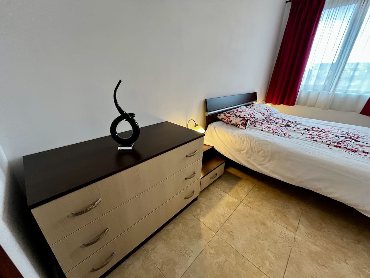 Спальня — изолированная, спокойная по настроению. Здесь нет лишнего — только то, что нужно для отдыха. Санузел в хорошем состоянии, с душевой кабиной. Квартира полностью меблирована и готова к проживанию без дополнительных вложений.